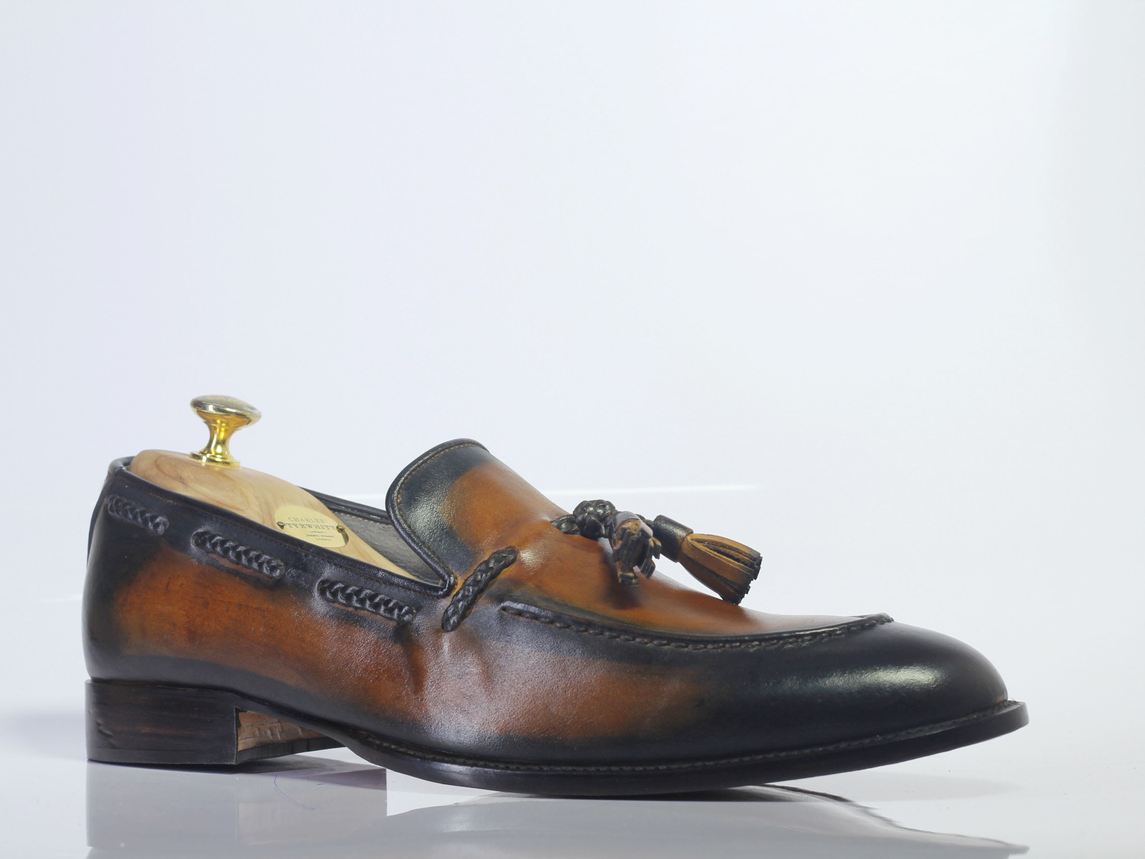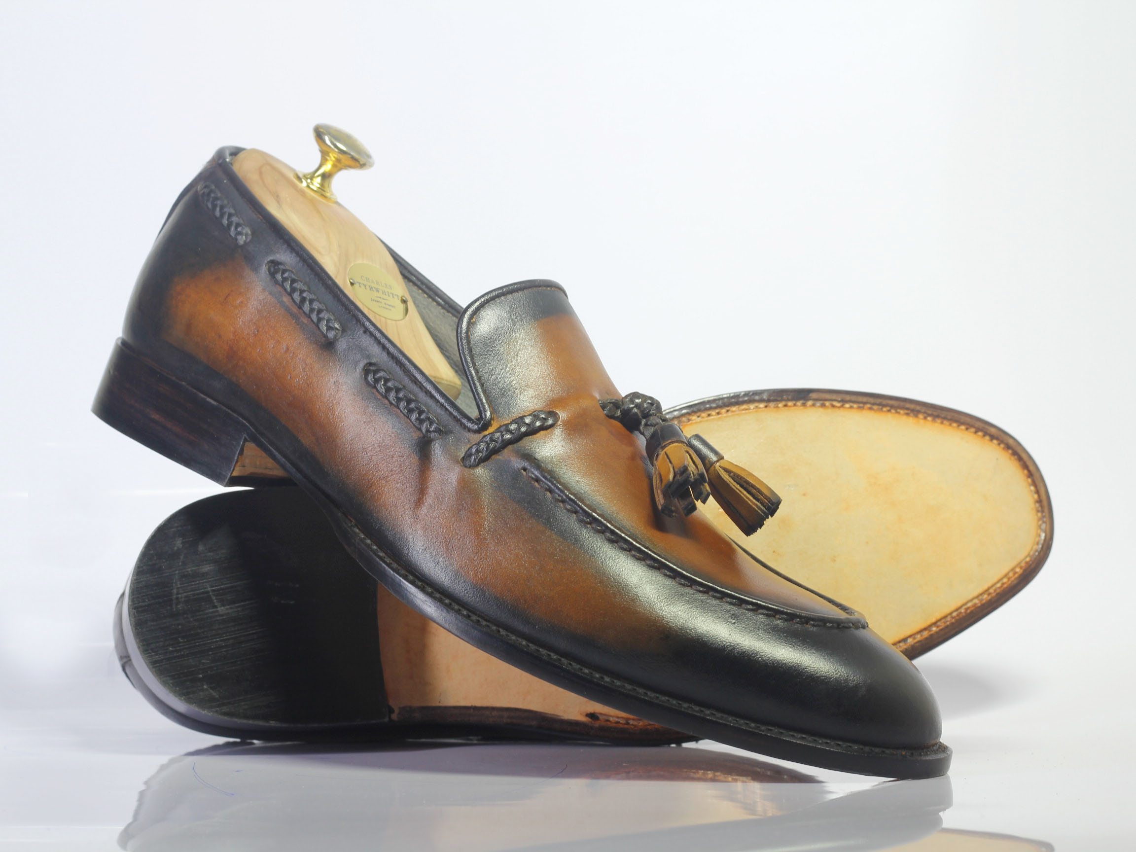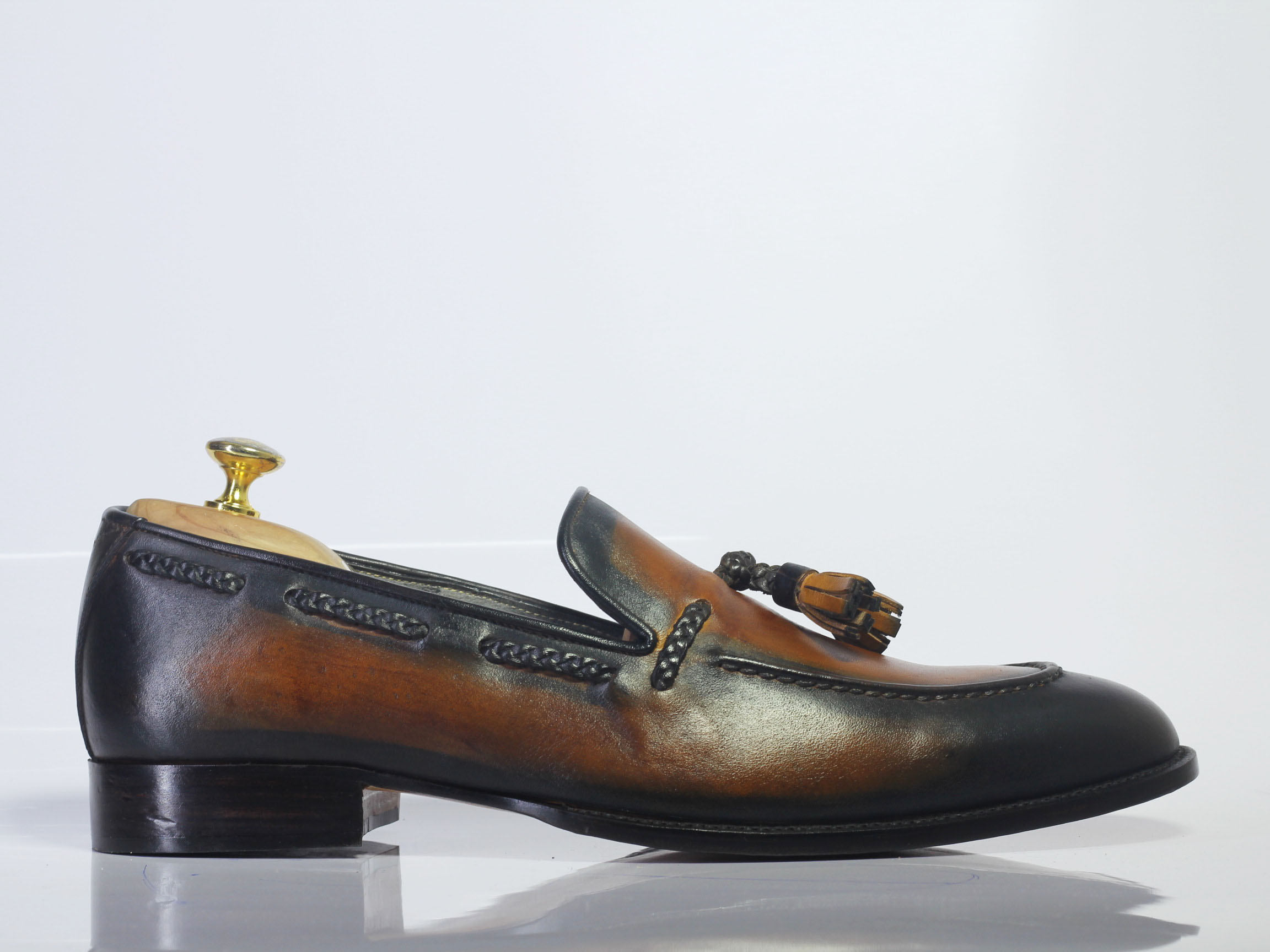 Handmade Brown Tussle Leather Loafers Shoes For Men's