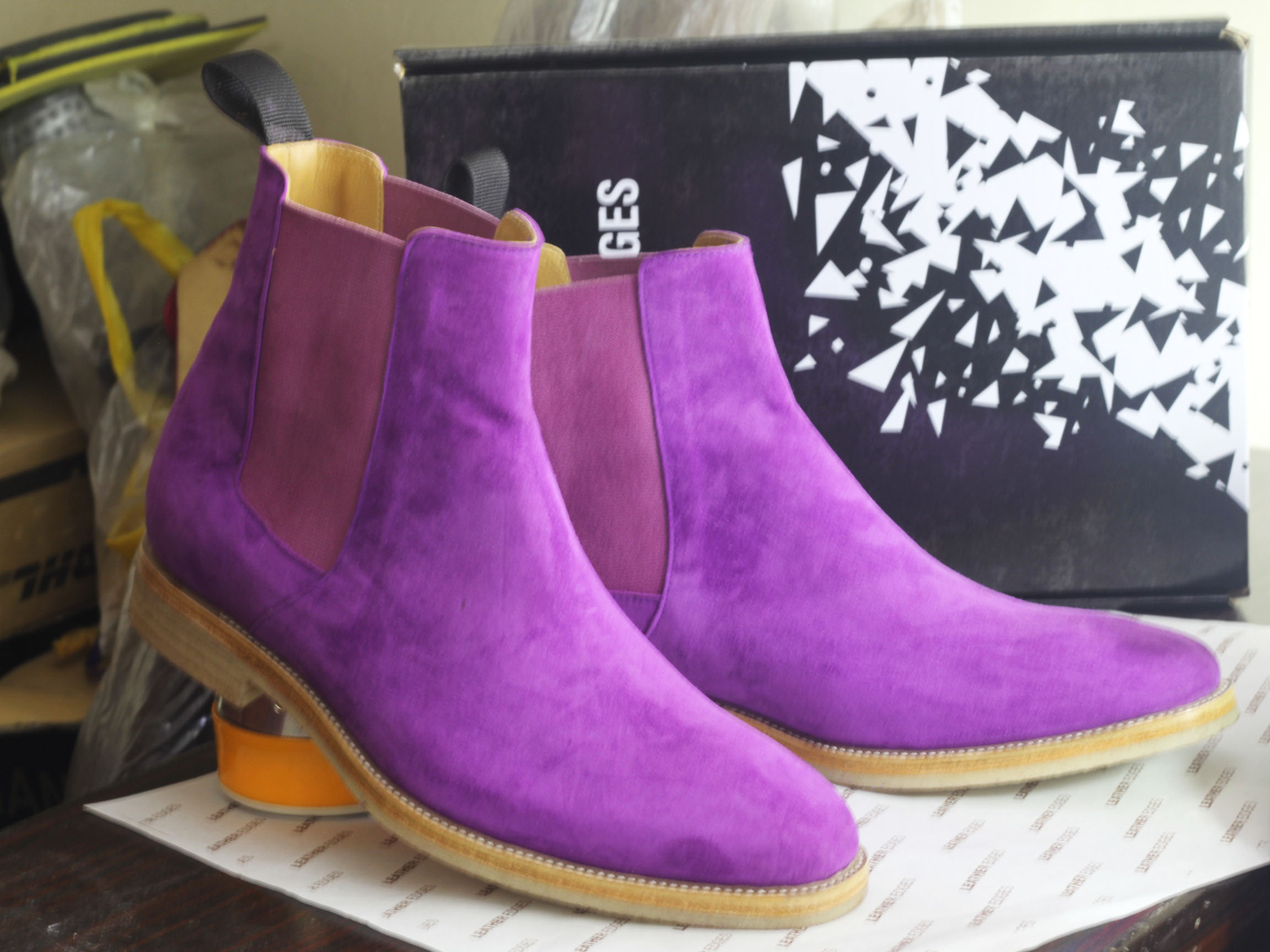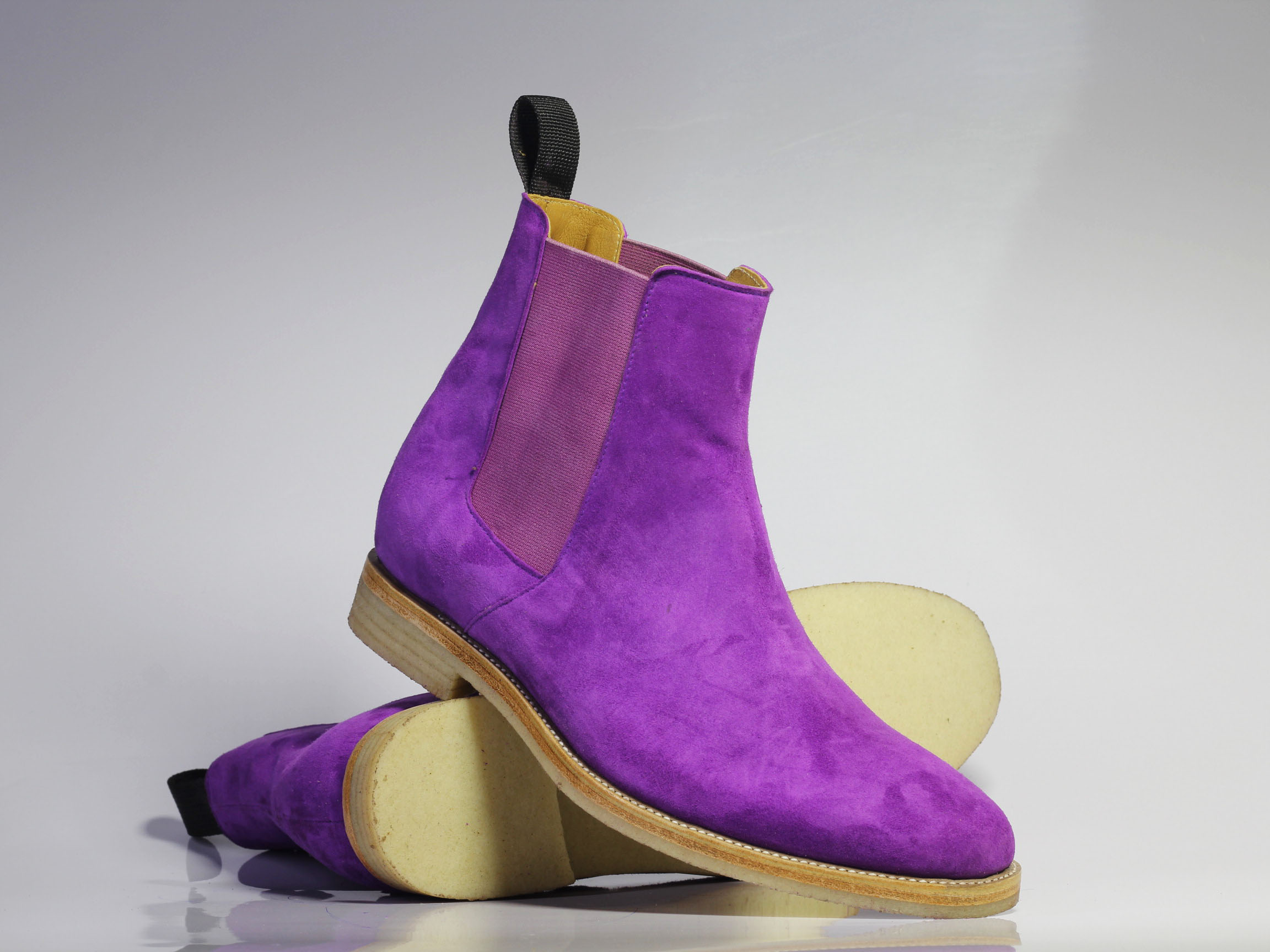 Handmade Men's Purple Ankle High Chelsea Suede Boots