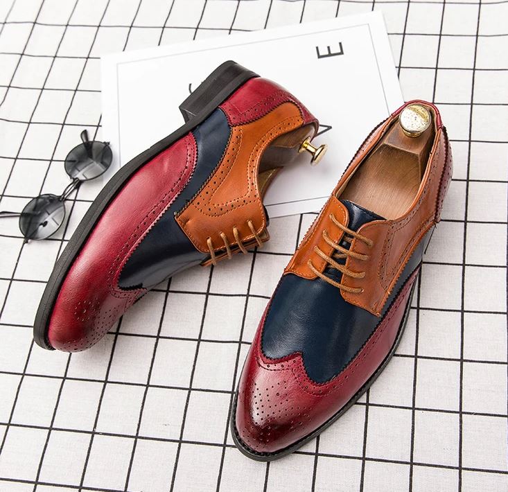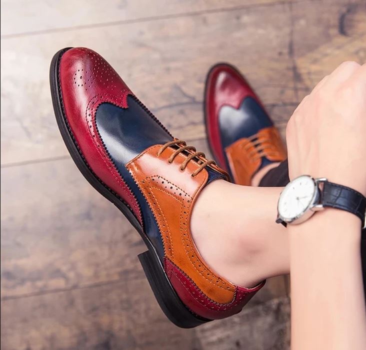Handmade Multi Color Wing Tip Brogue Lace Up Leather Shoes For Men's