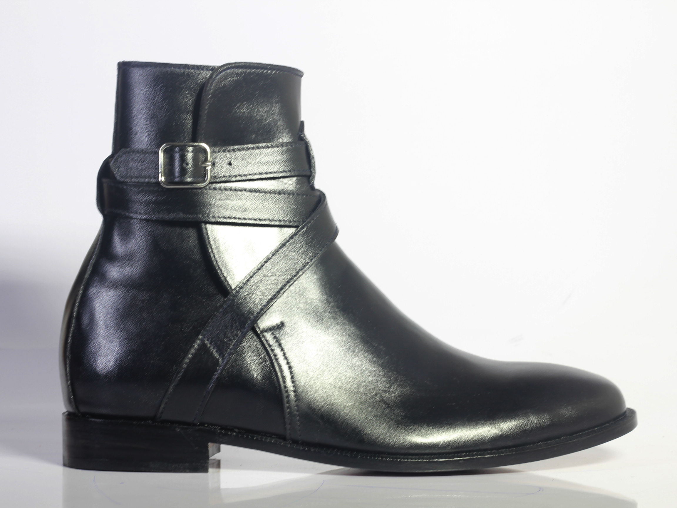 Handmade Men's Black Leather Half Ankle Jodhpurs Boots