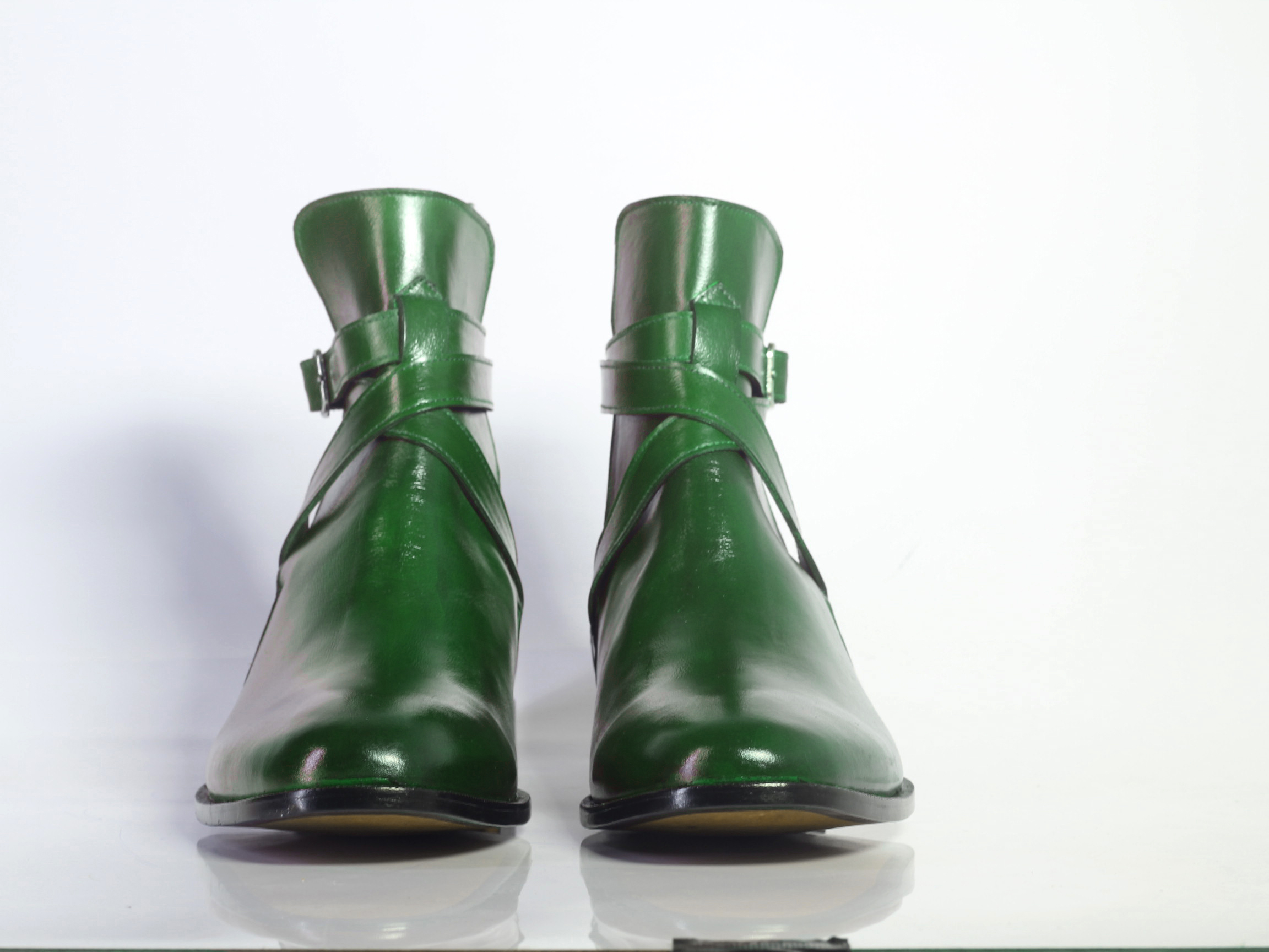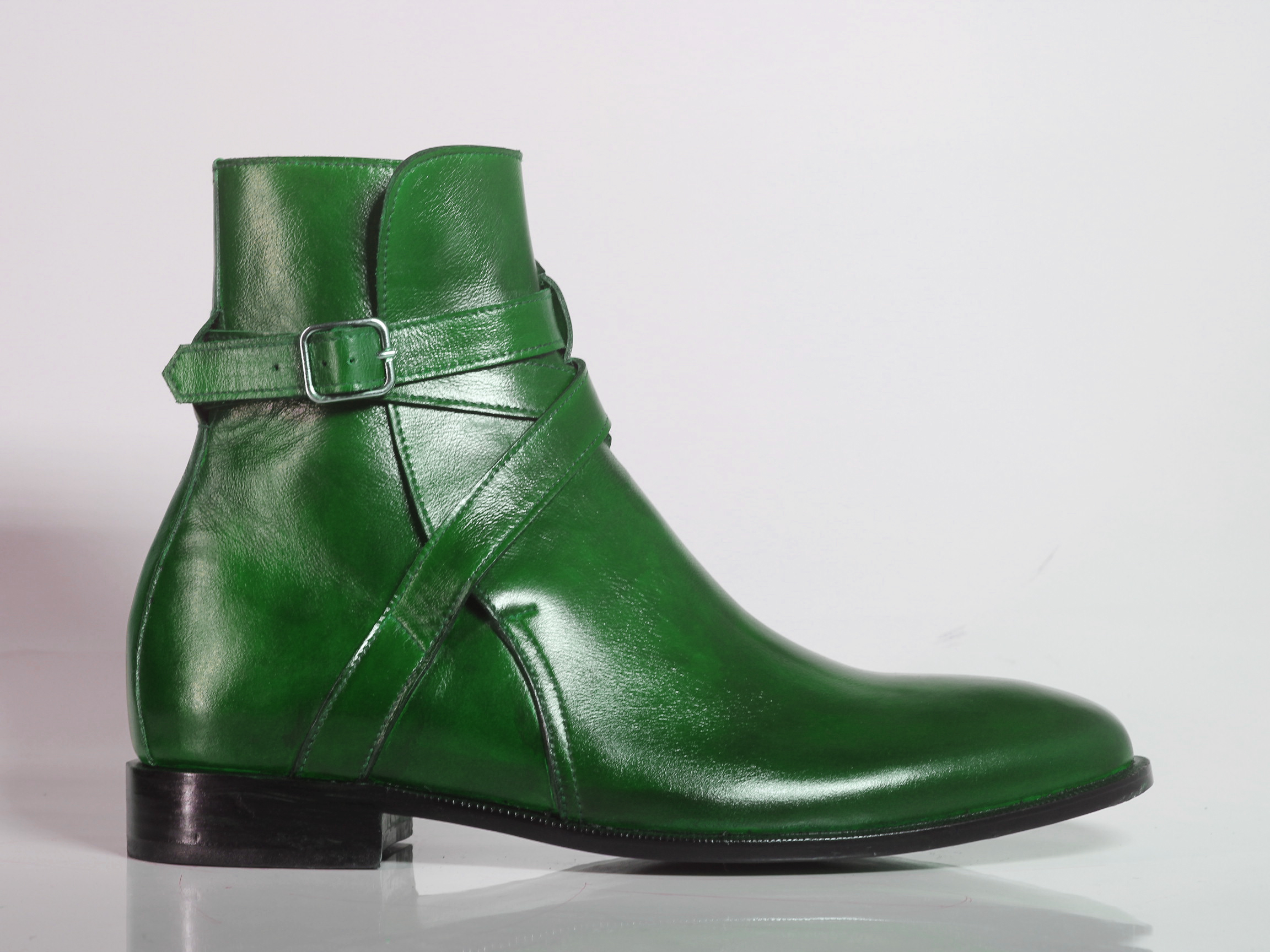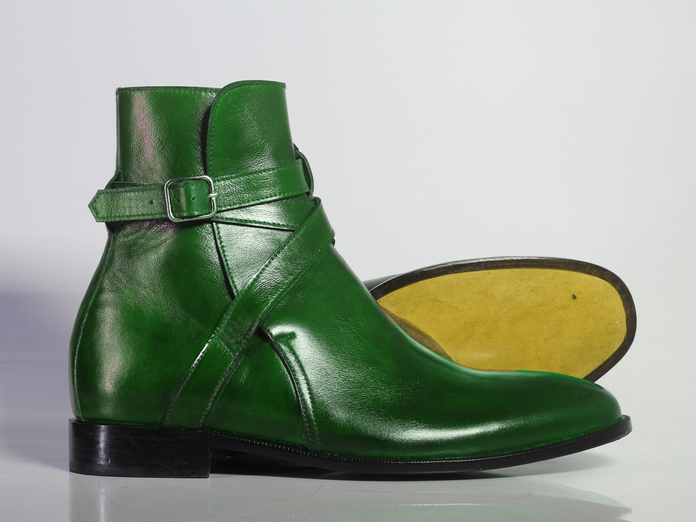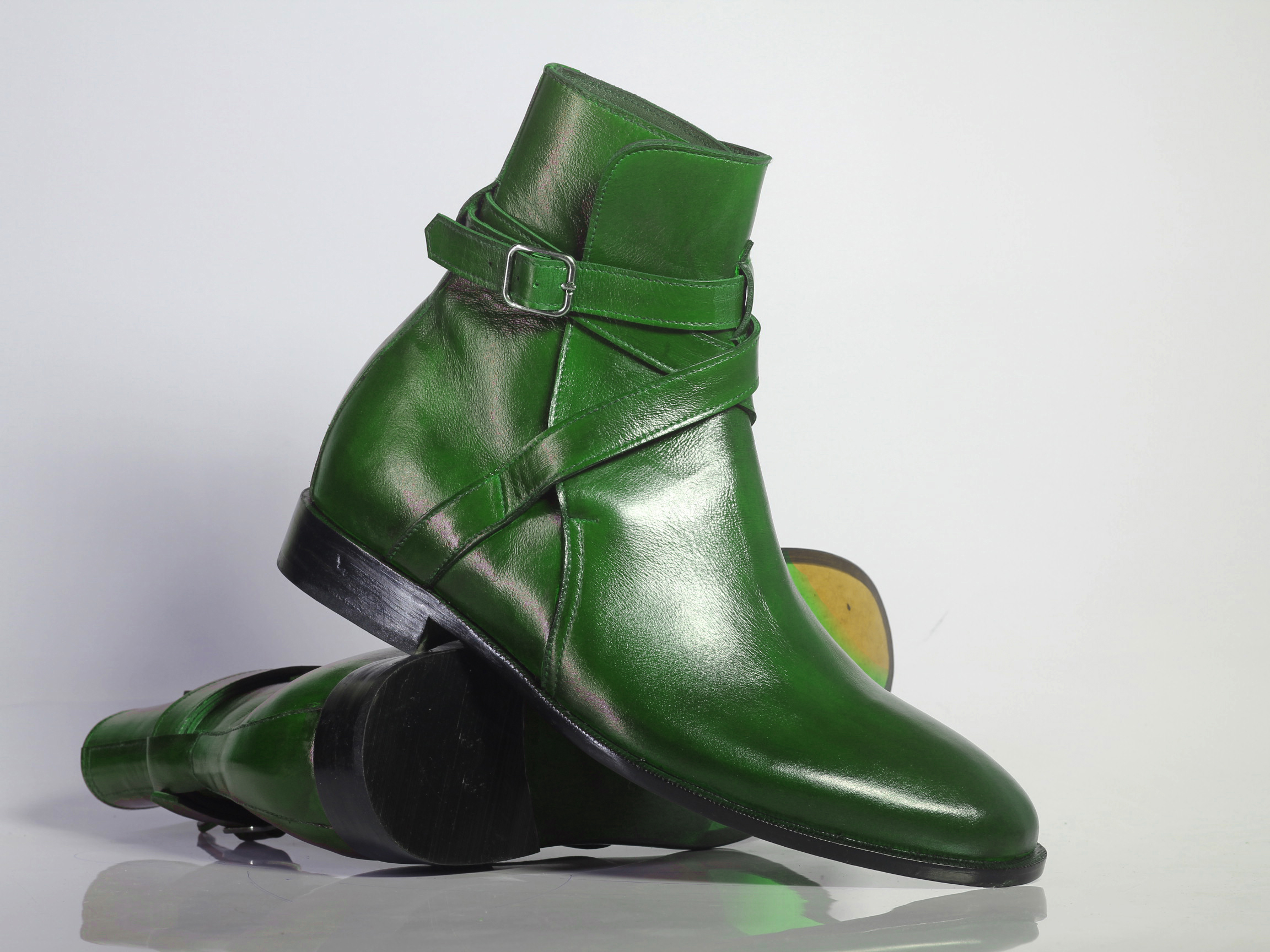 Handmade Men's Green Leather Half Ankle Jodhpurs Boots
