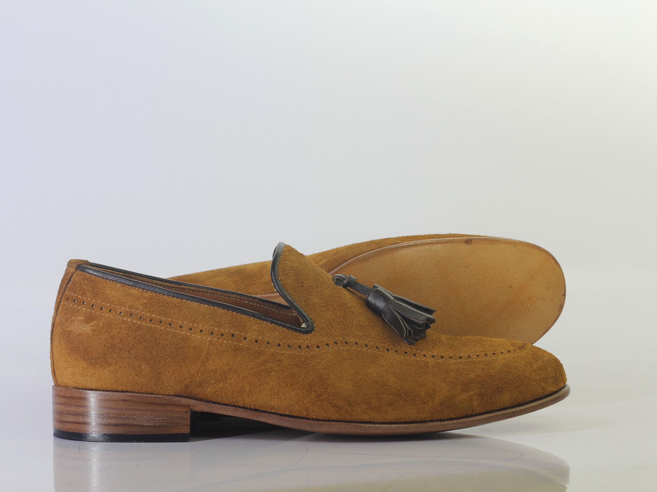 Handmade Brown Tussles Suede Loafers Shoes For Men's