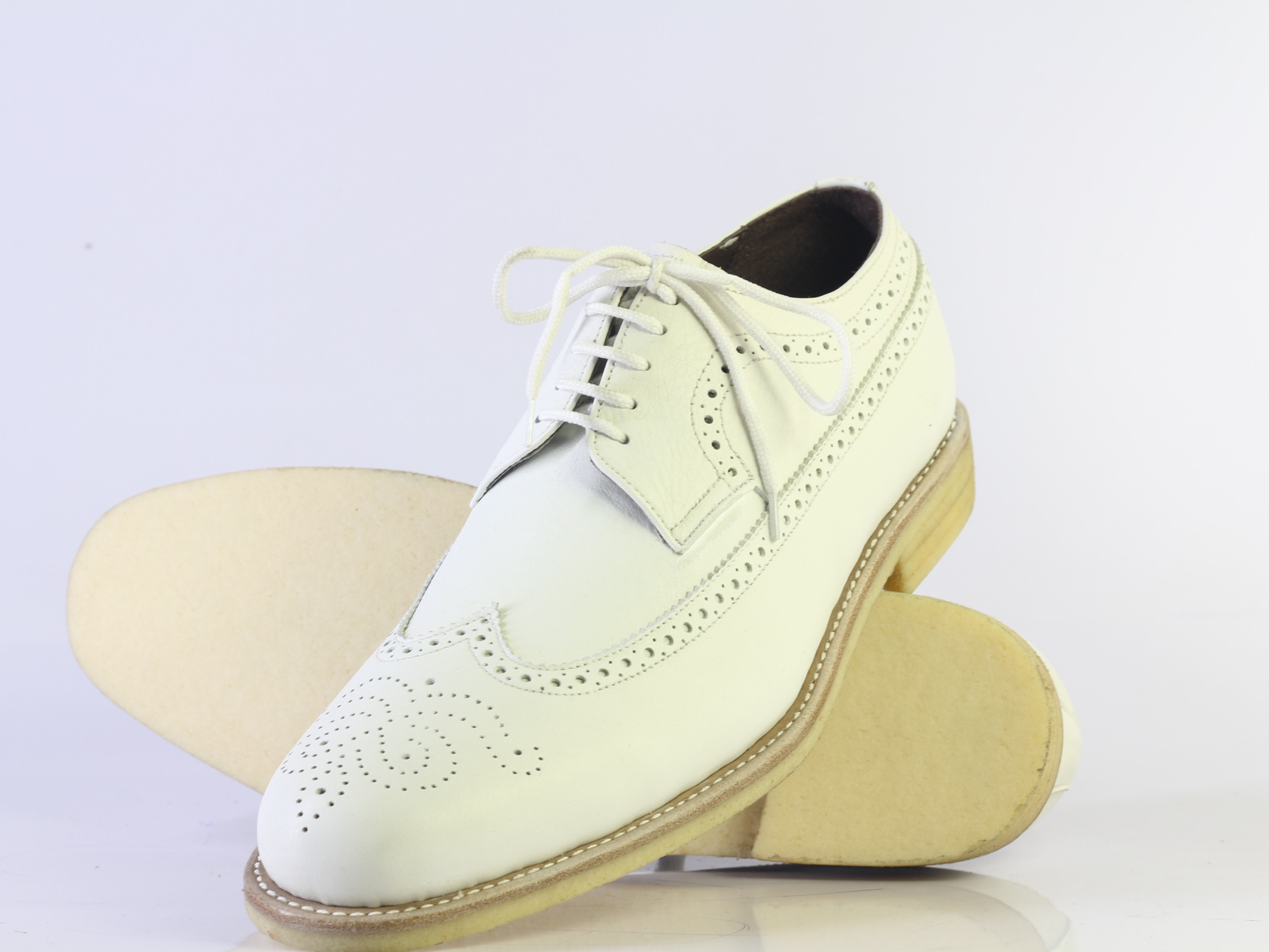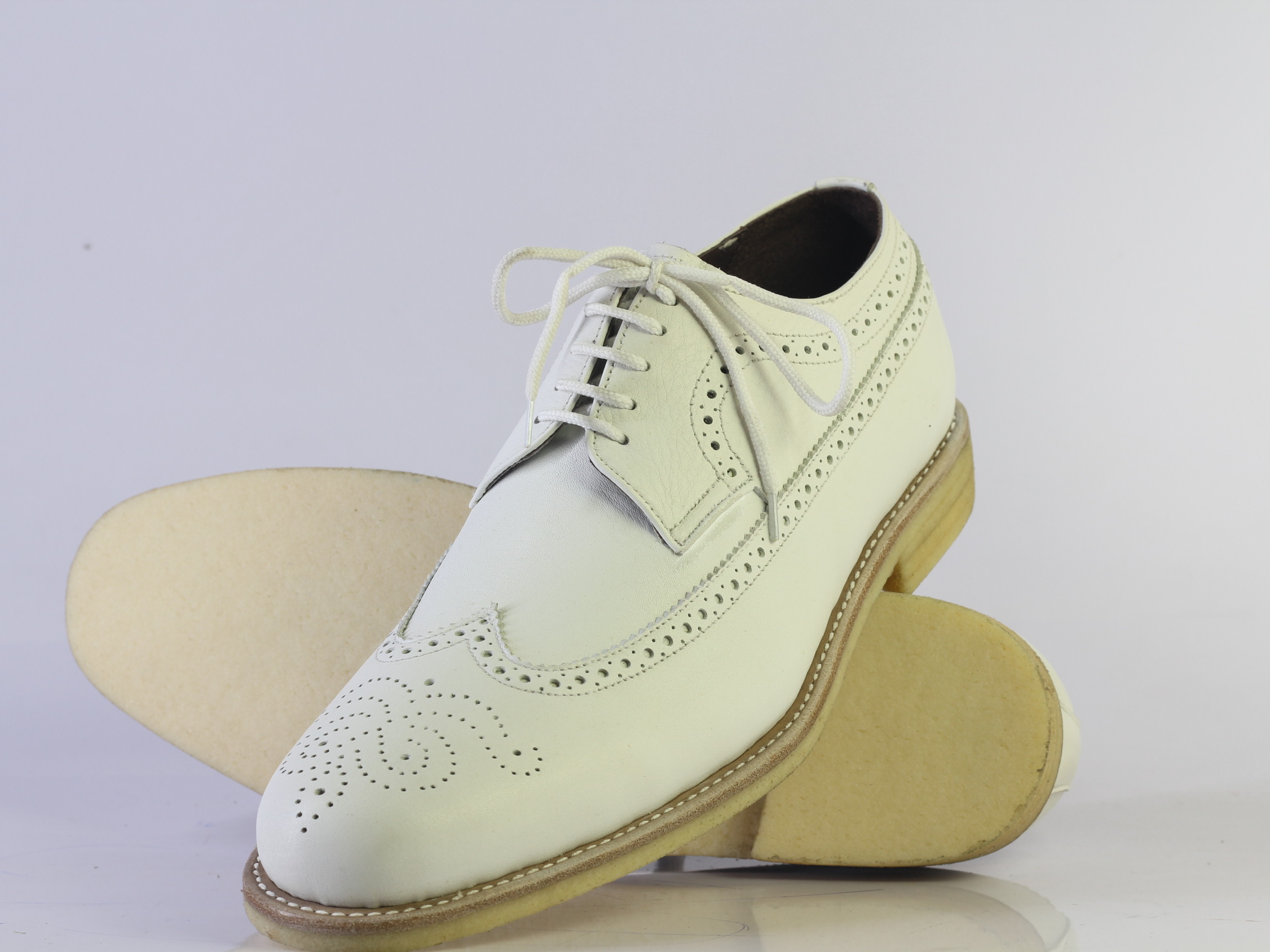 Handmade White Wing Tip Brogue Stylish Lace Up Leather Shoes For Men's