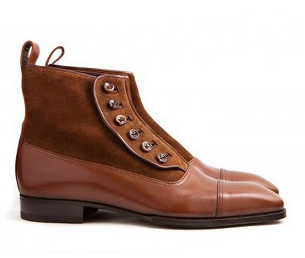 Handmade Brown Button Top Leather Suede Boot For Men's