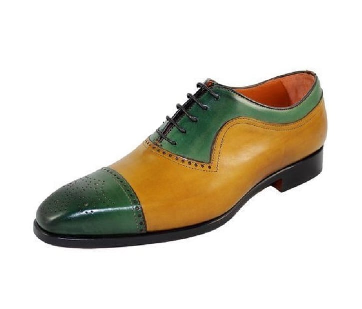 Handmade Green Tan Brogue Lace Up Leather Shoes For Men's