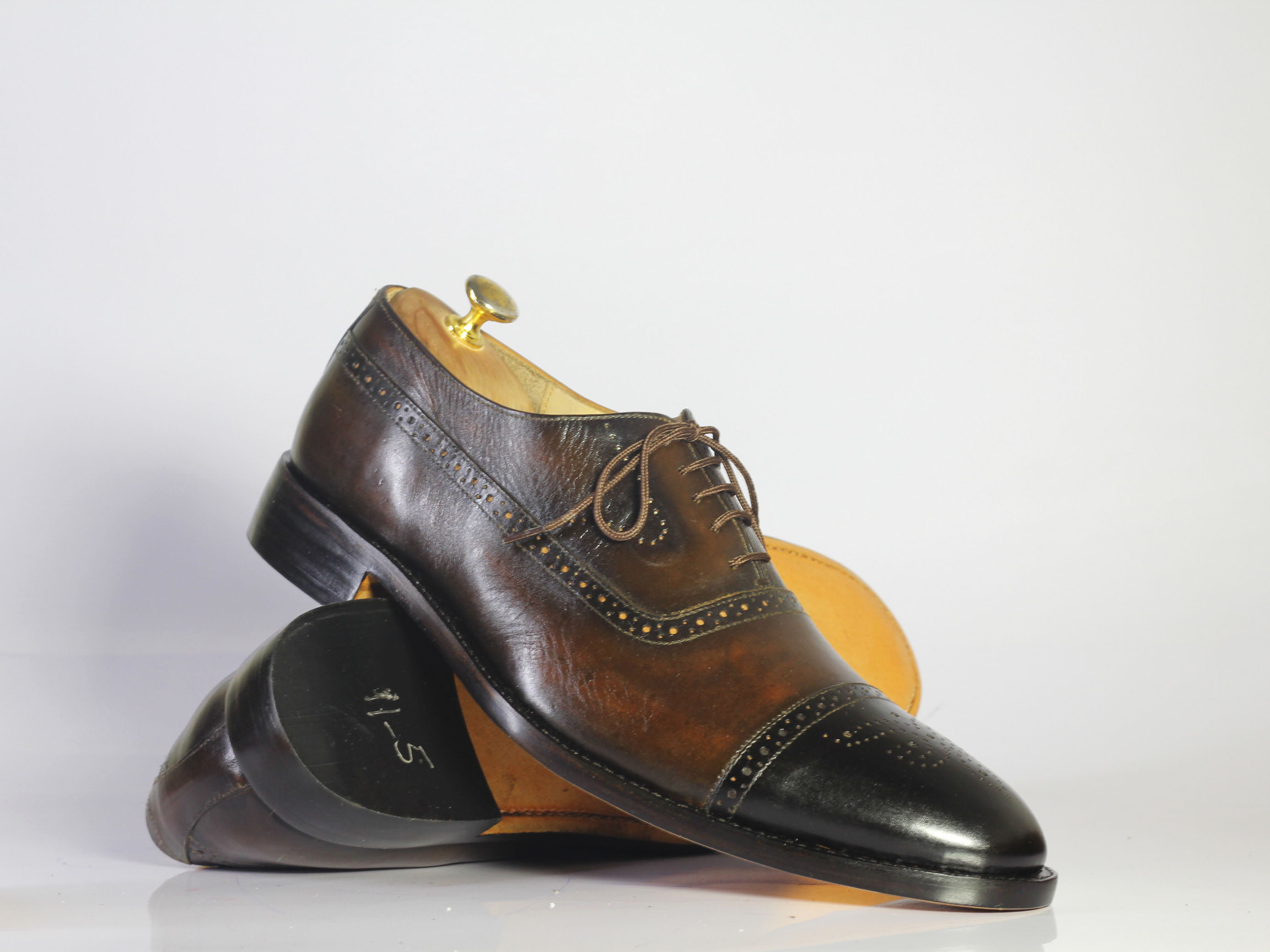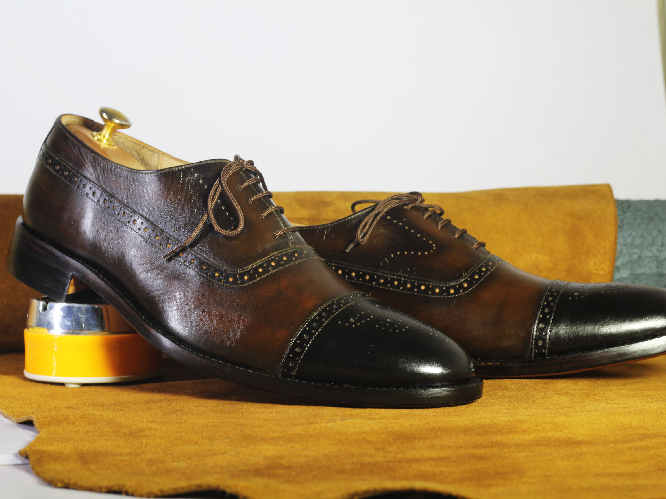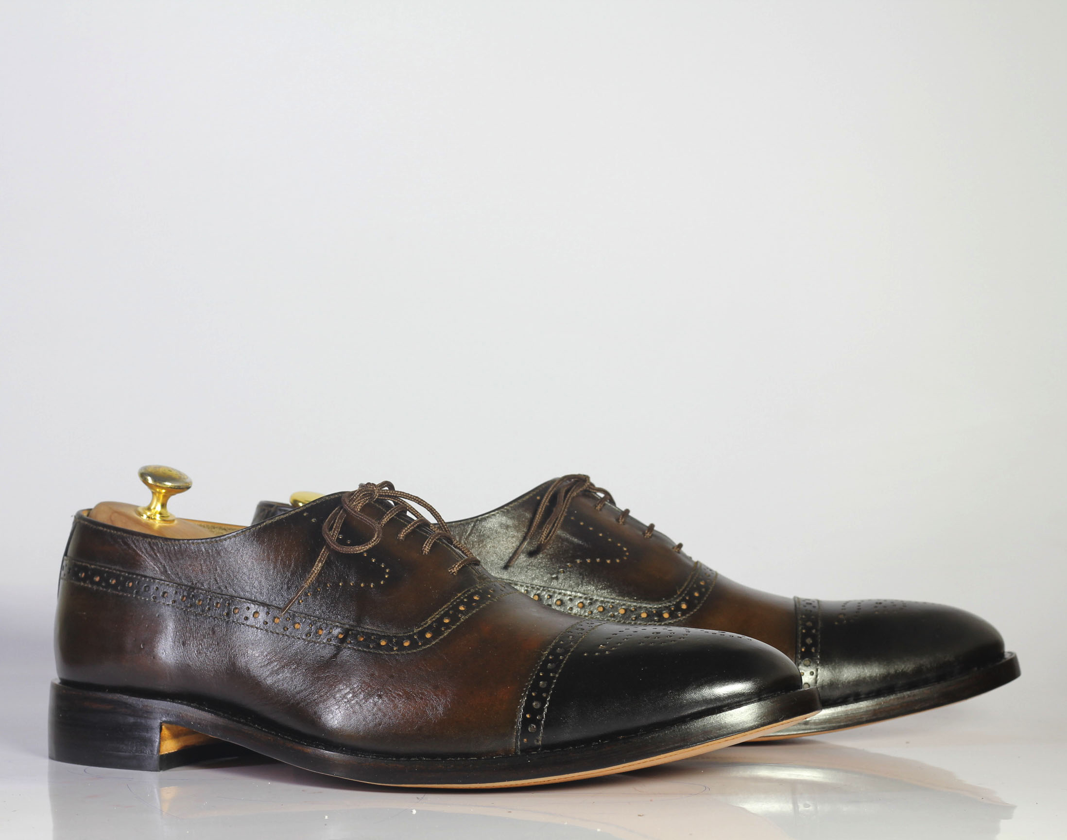 Handmade Brown Cap Toe Shoes Stylish Leather Lace Up Shoes For Men's