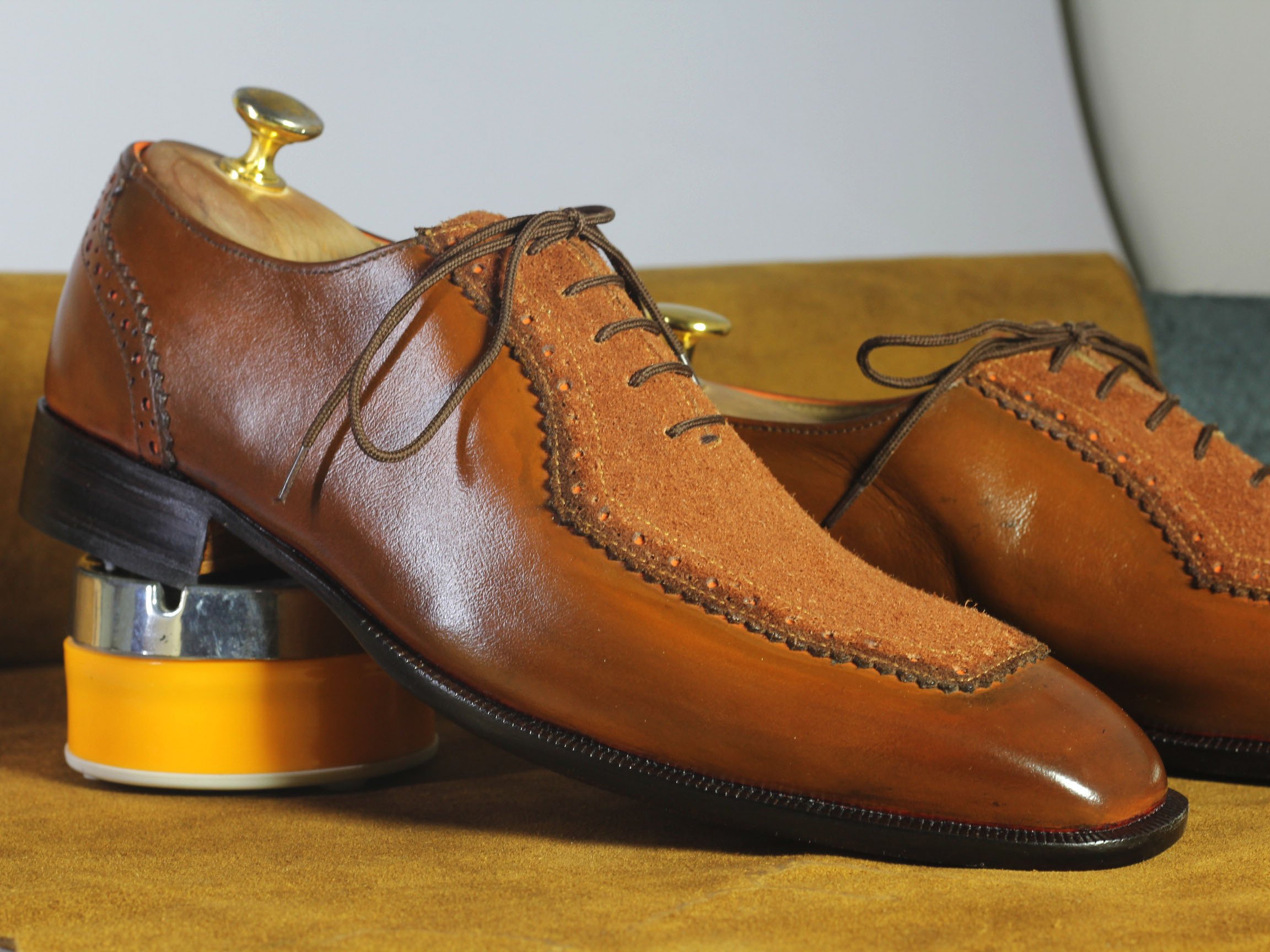 Handmade Brown Square Toe Shoes Stylish Leather Lace Up Shoes For Men's