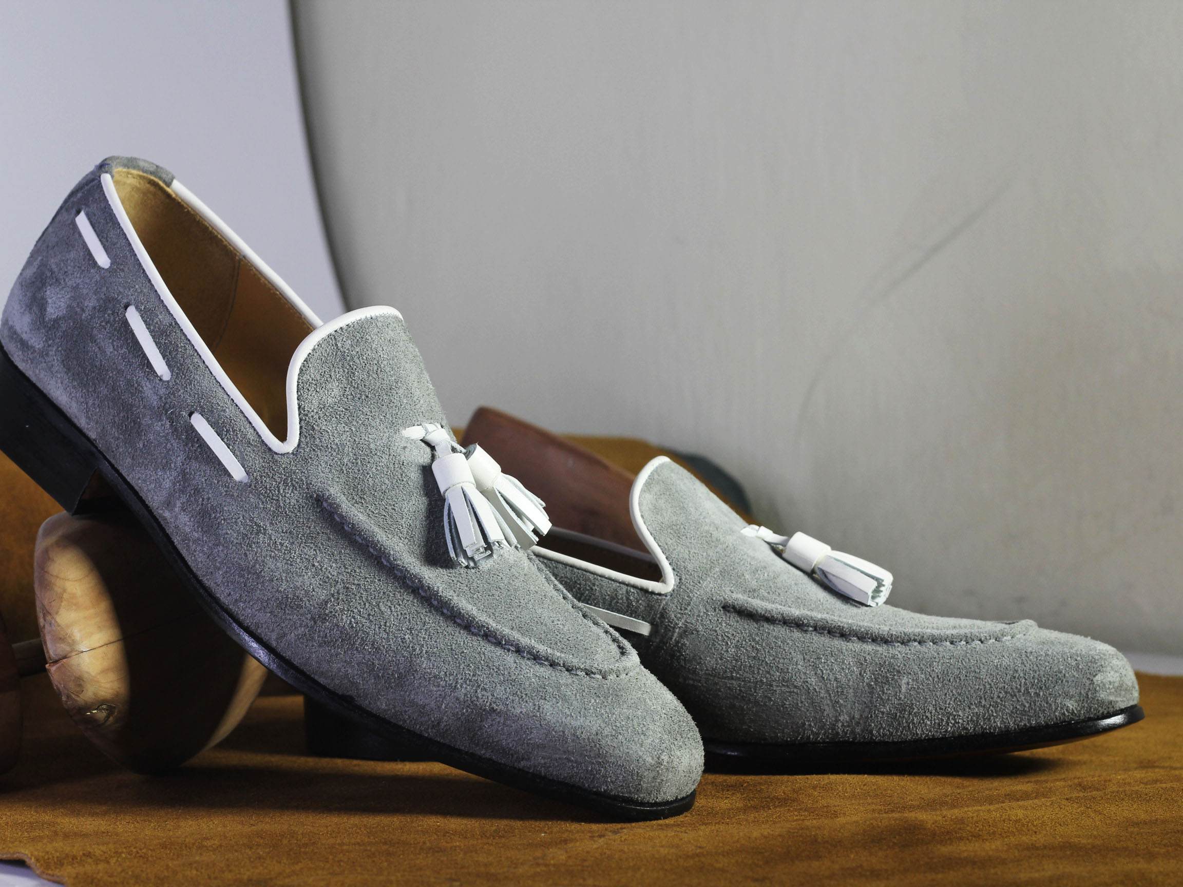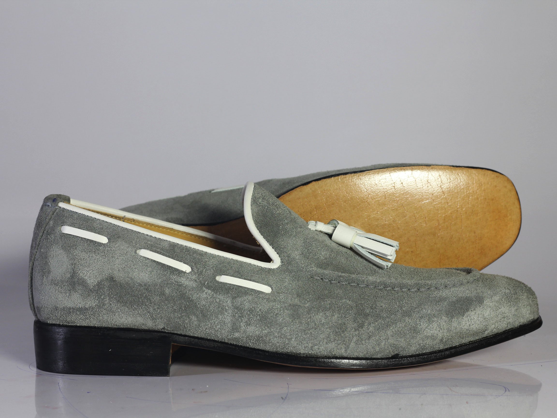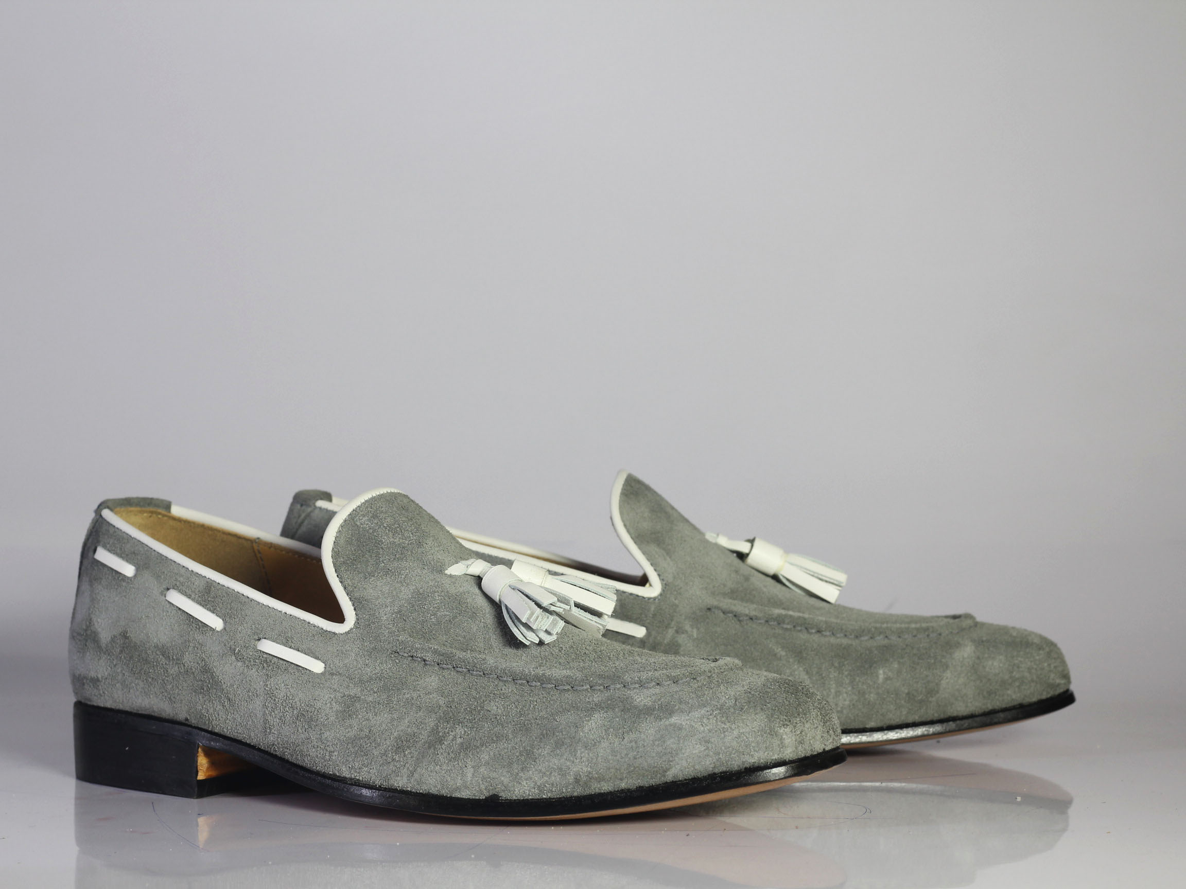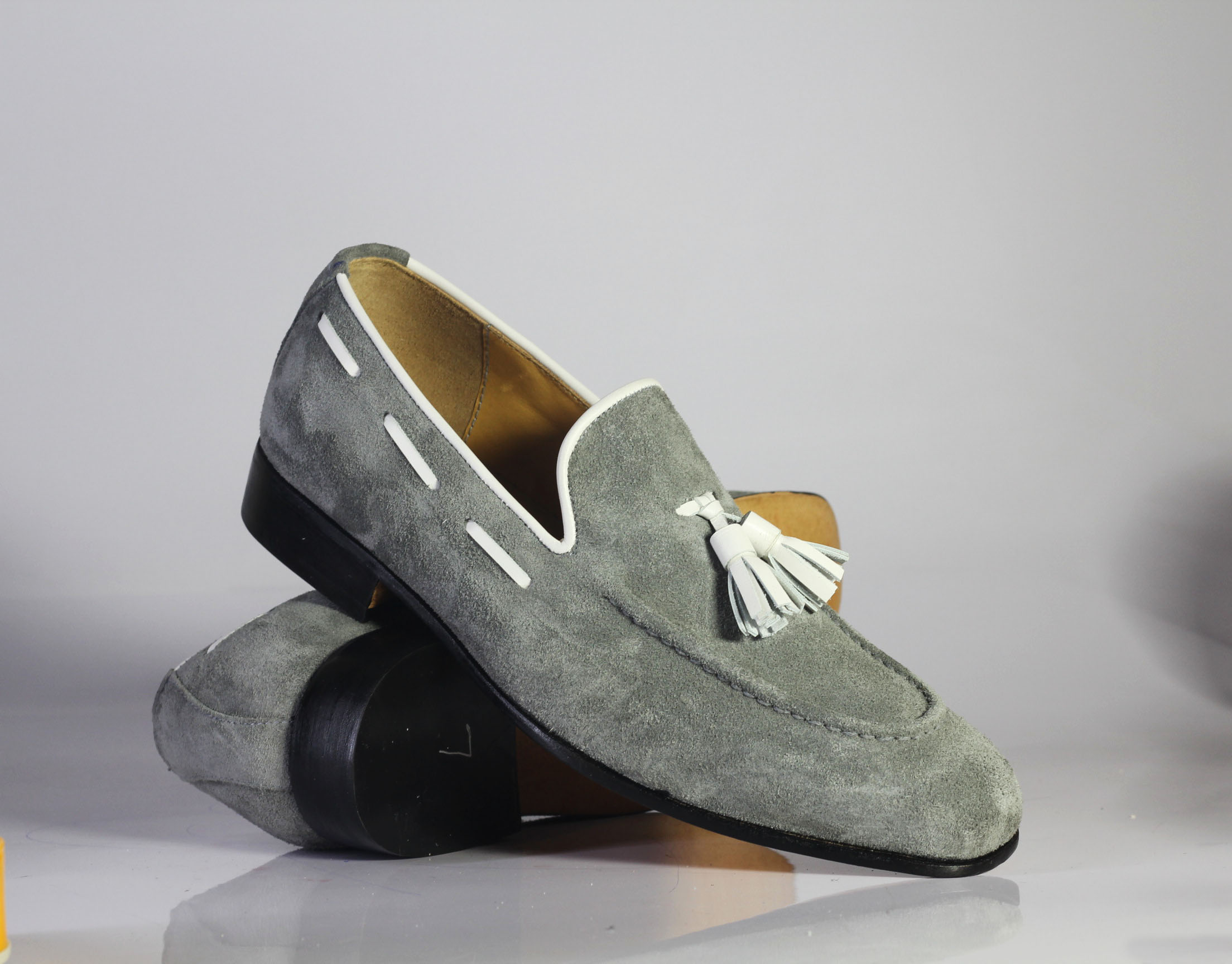 Handmade Gray Tussles Loafers Shoes Stylish Suede Shoes For Men's