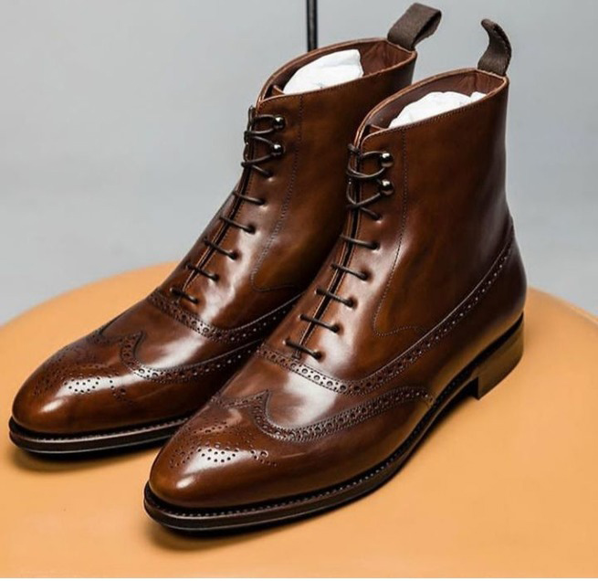 Handmade Men's Ankle High Boot, Men's Brown Leather Wing Tip Lace Up Casual Boot.