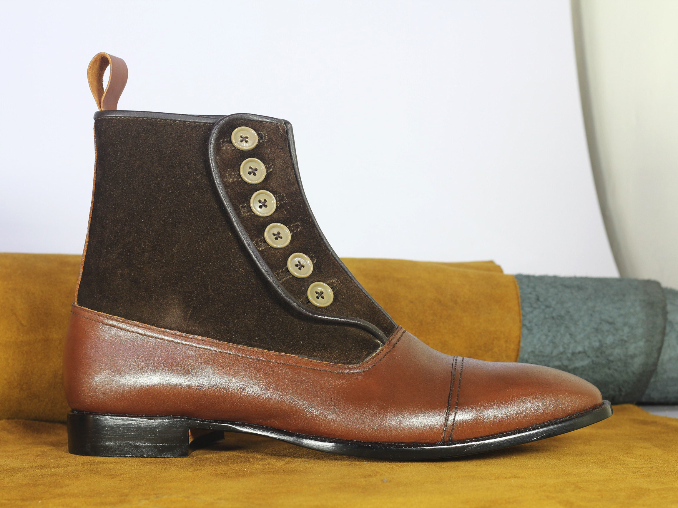 Handmade Men's Fashion brown Leather Suede Cap toe Buttons Top Boots