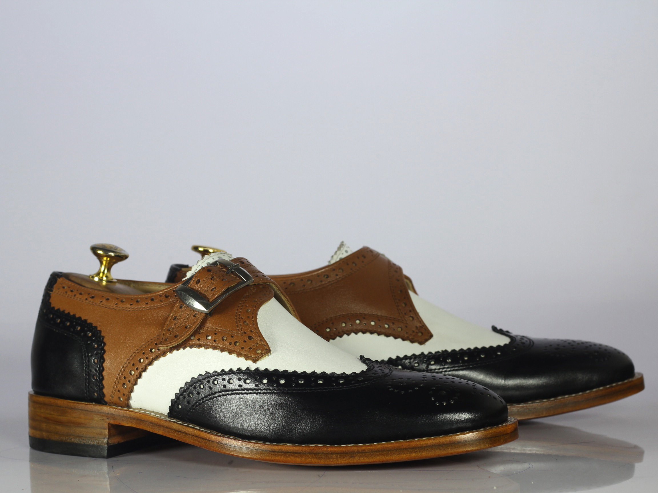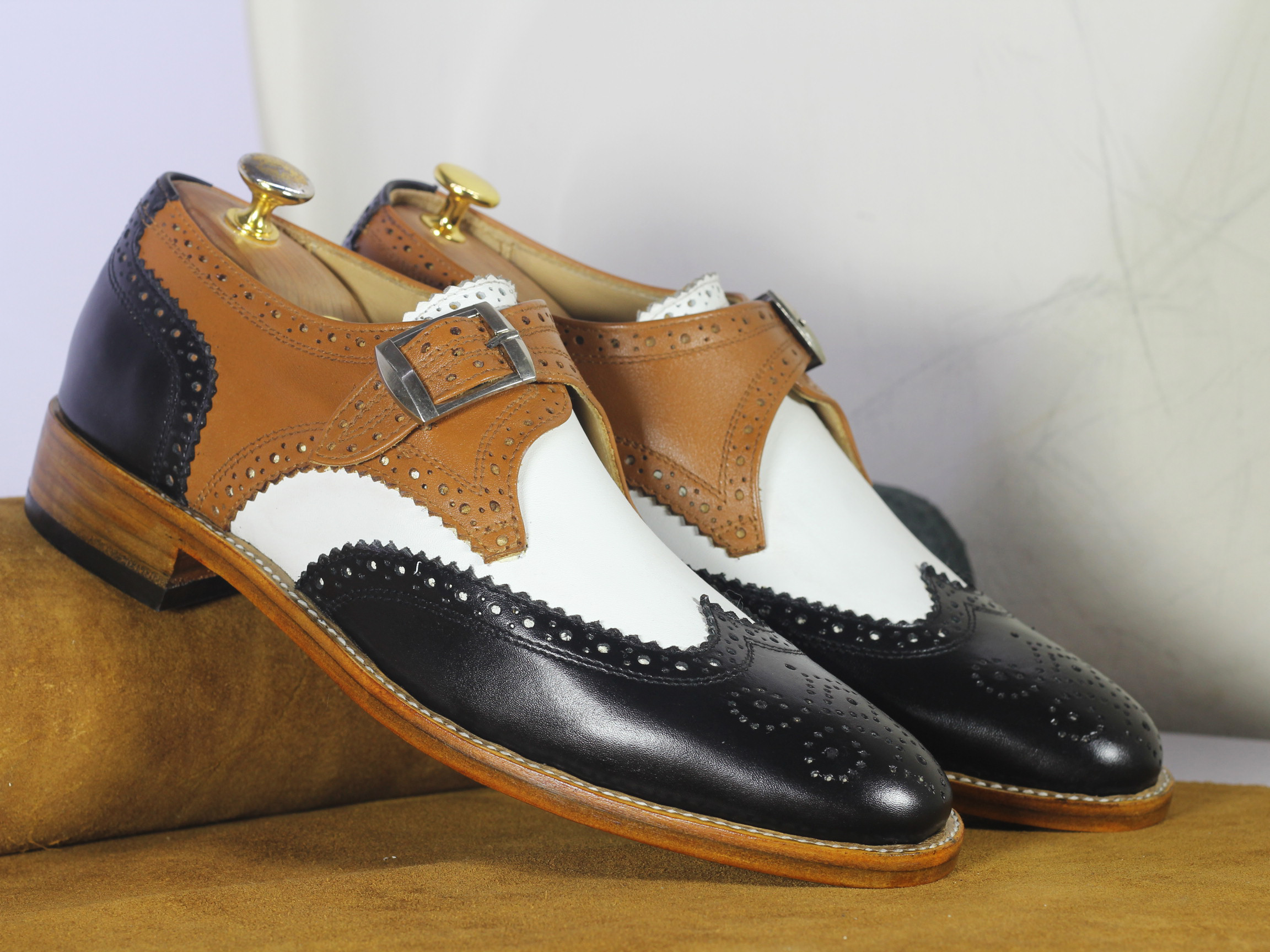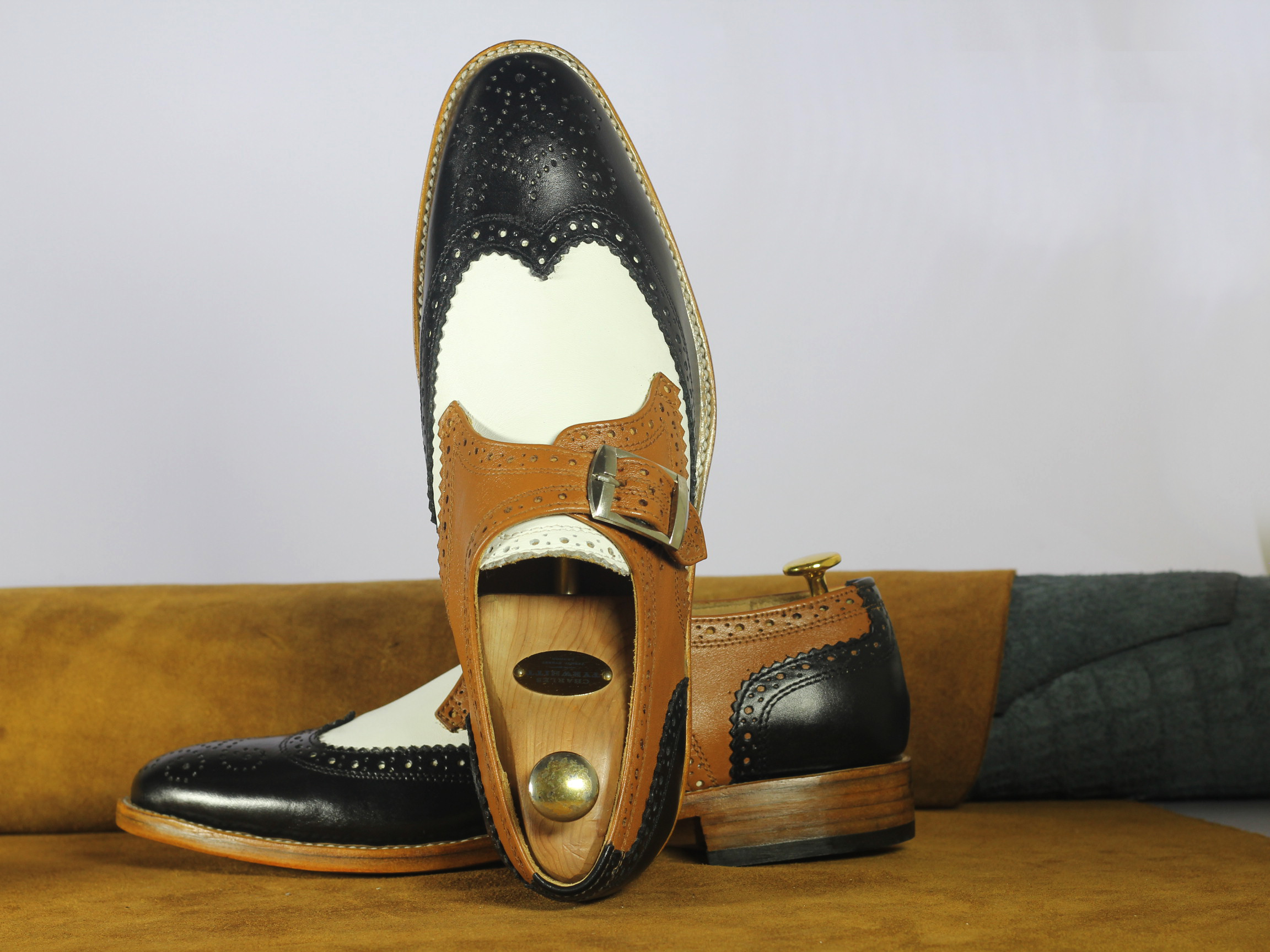 Handmade Multi Color Wing Tip Shoes Stylish Leather Monk Shoes For Men's