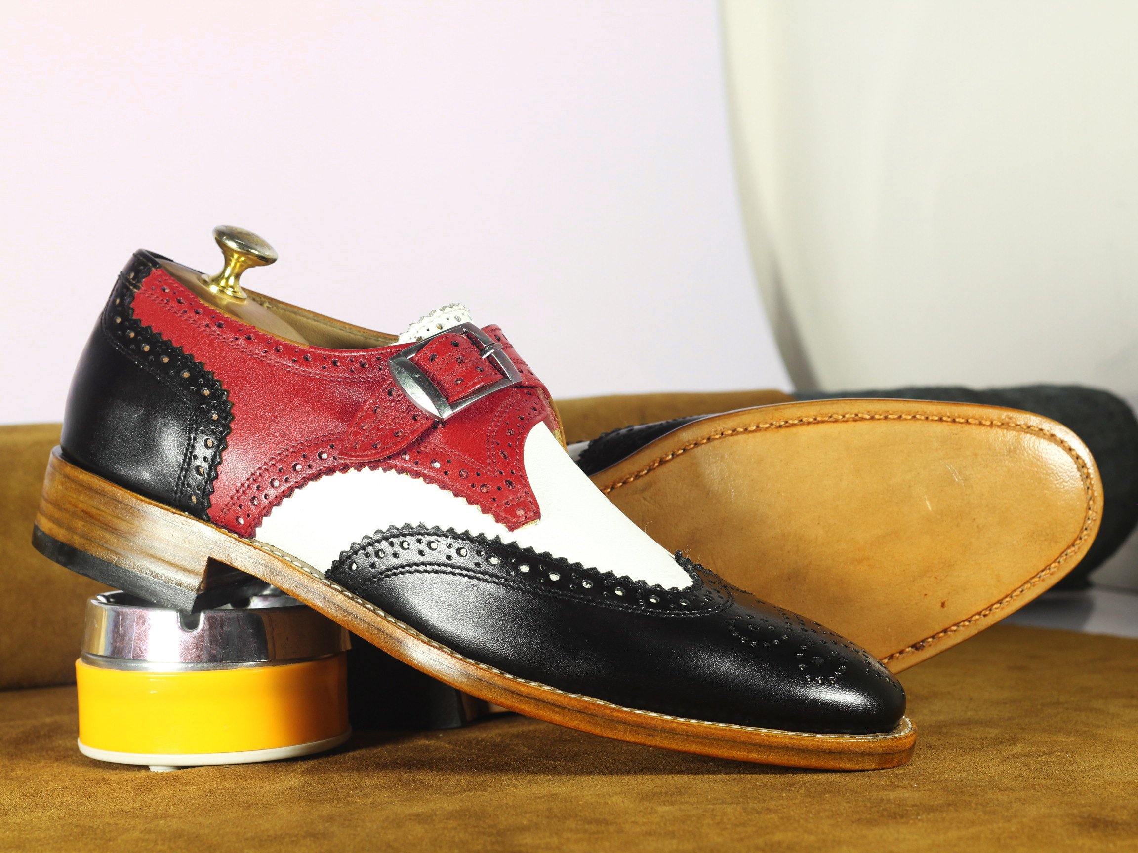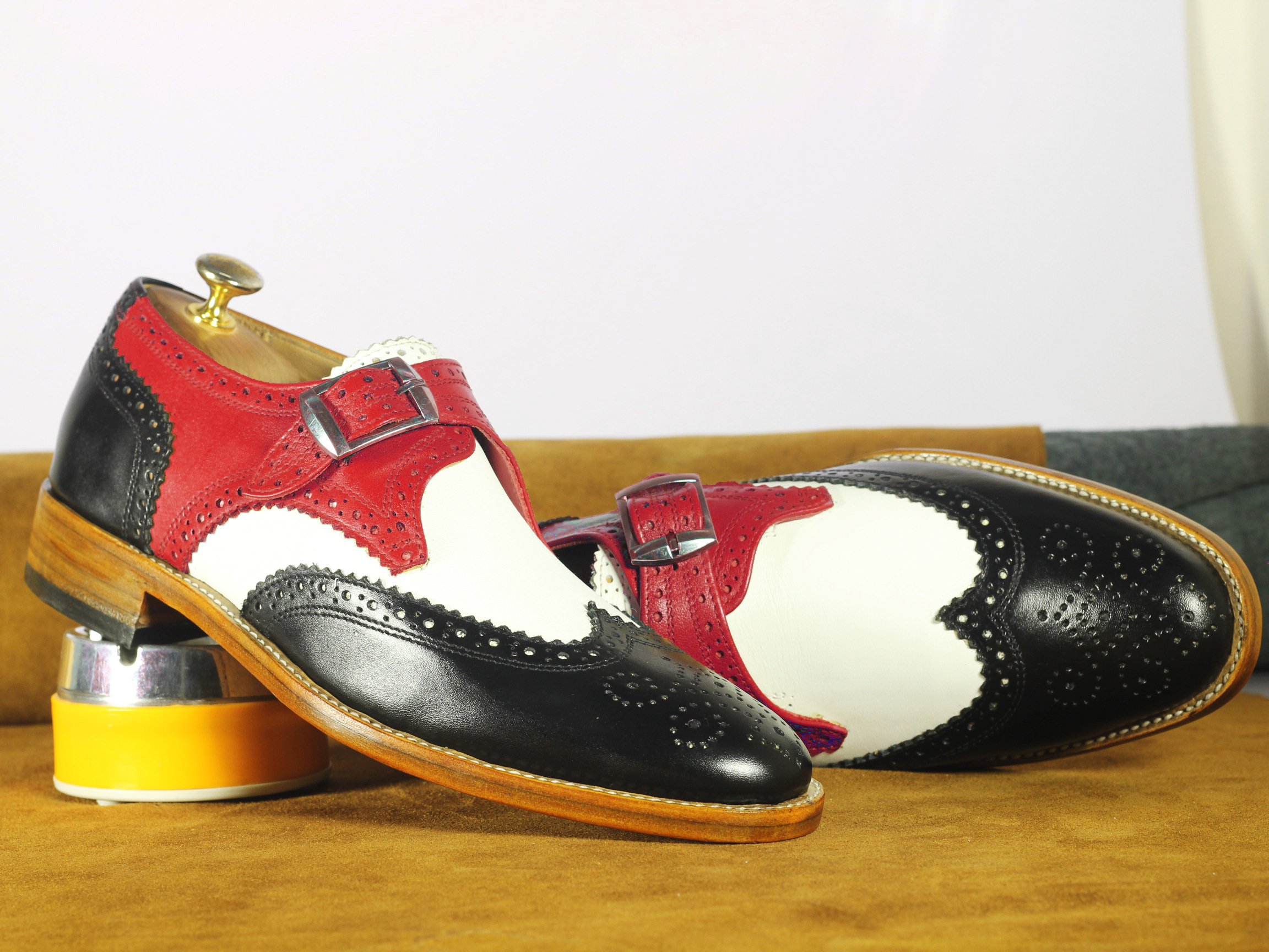 Handmade Multi Color Wing Tip Shoes Stylish Leather Monk Shoes For Men's