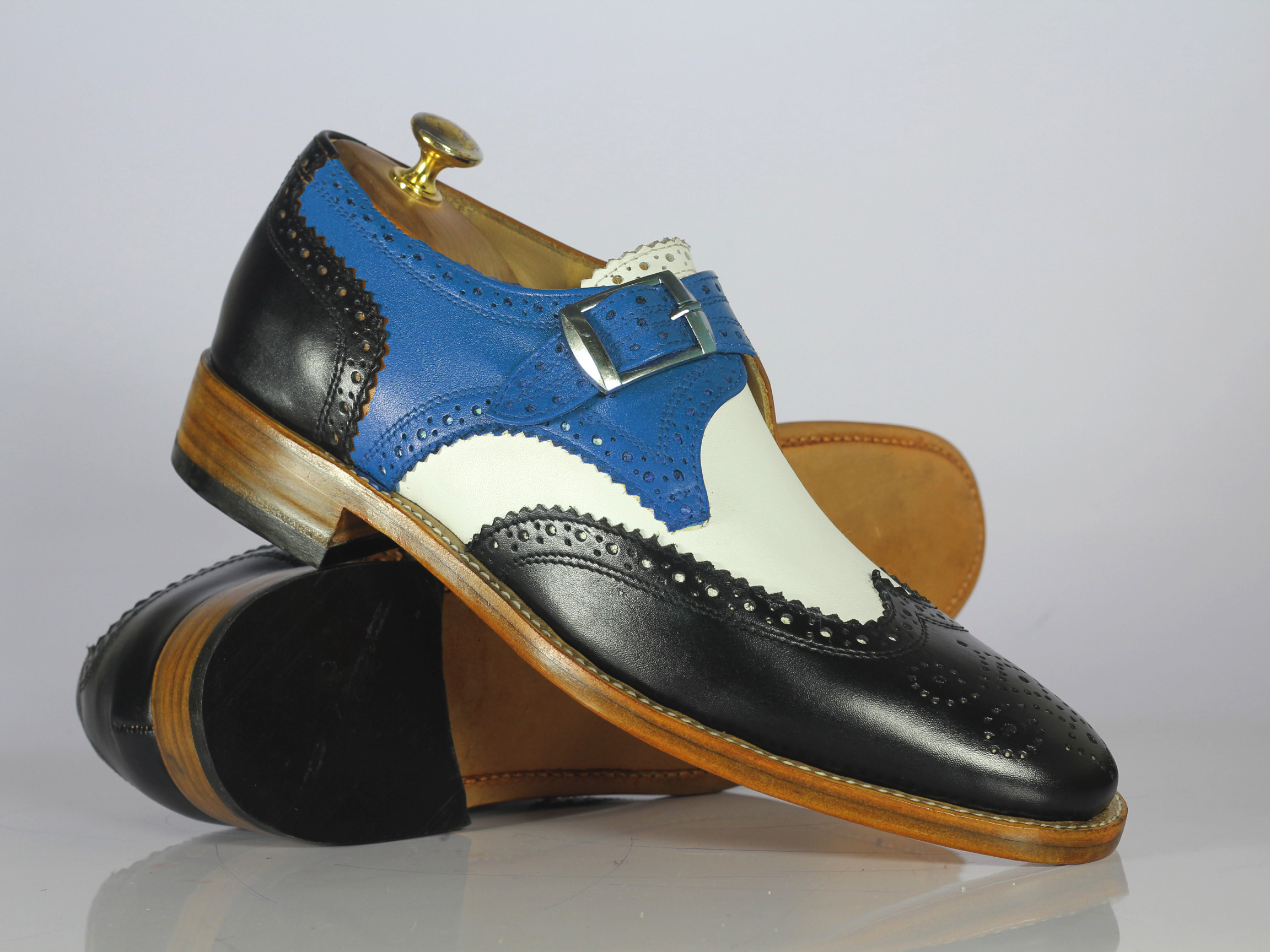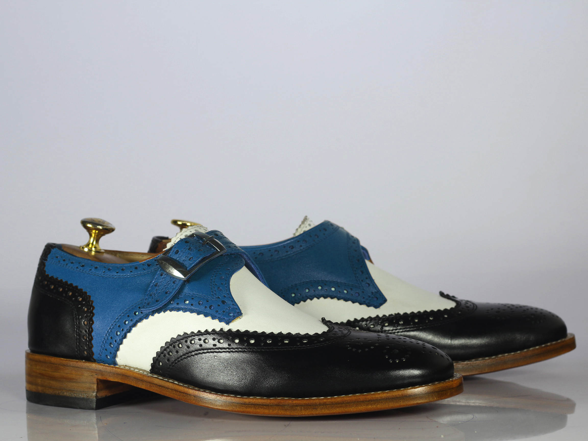 Handmade Multi Color Wing Tip Shoes Stylish Leather Monk Shoes For Men's