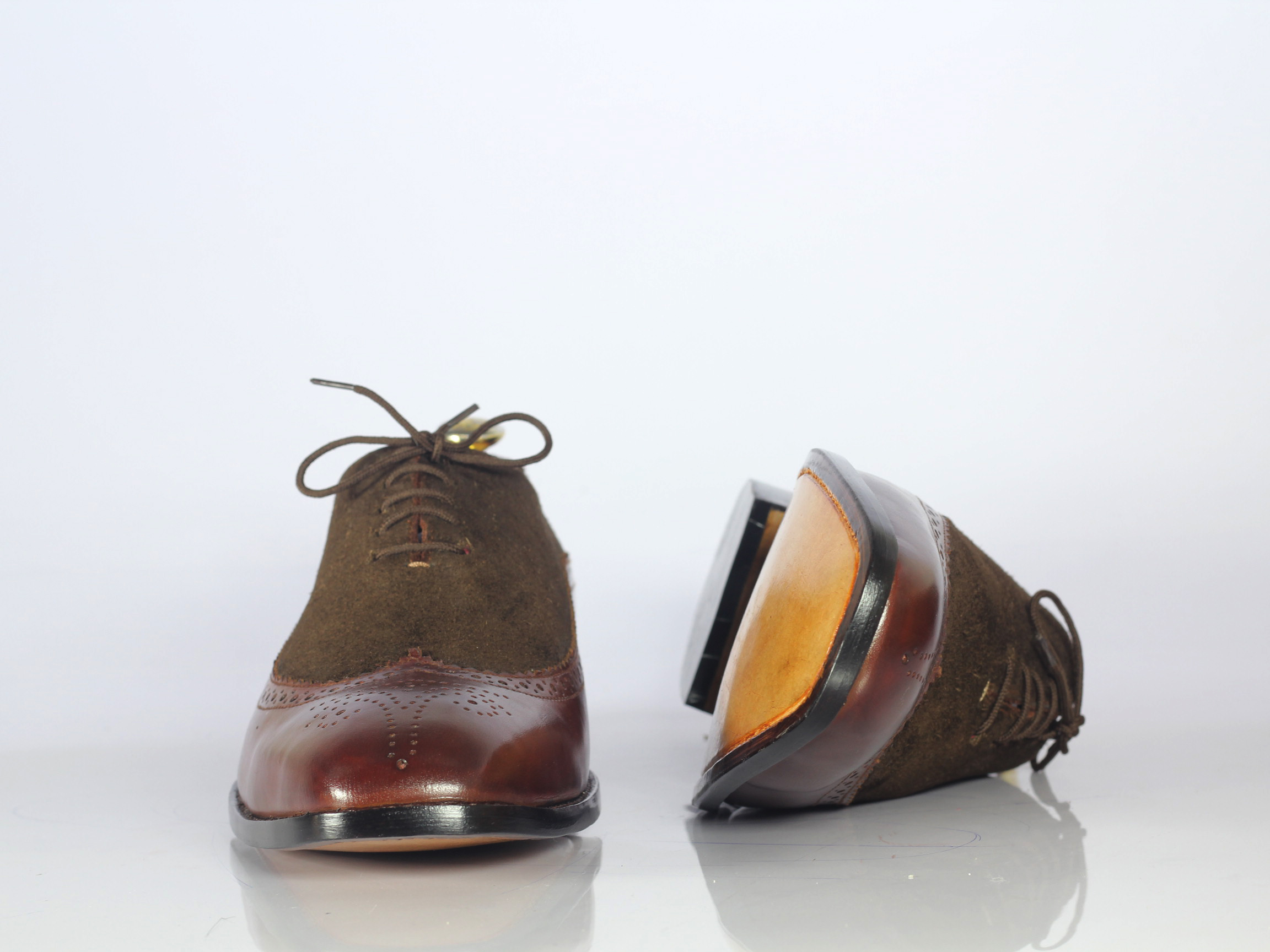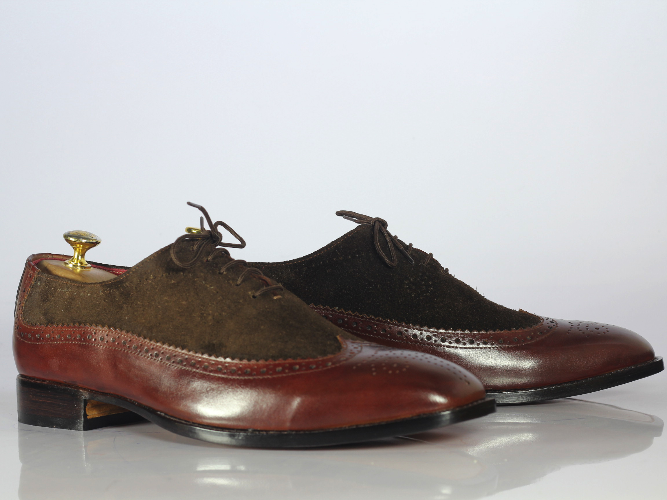 Handmade Brown Leather Suede Wing Tip Shoes Stylish Lace Up Shoes For Men's