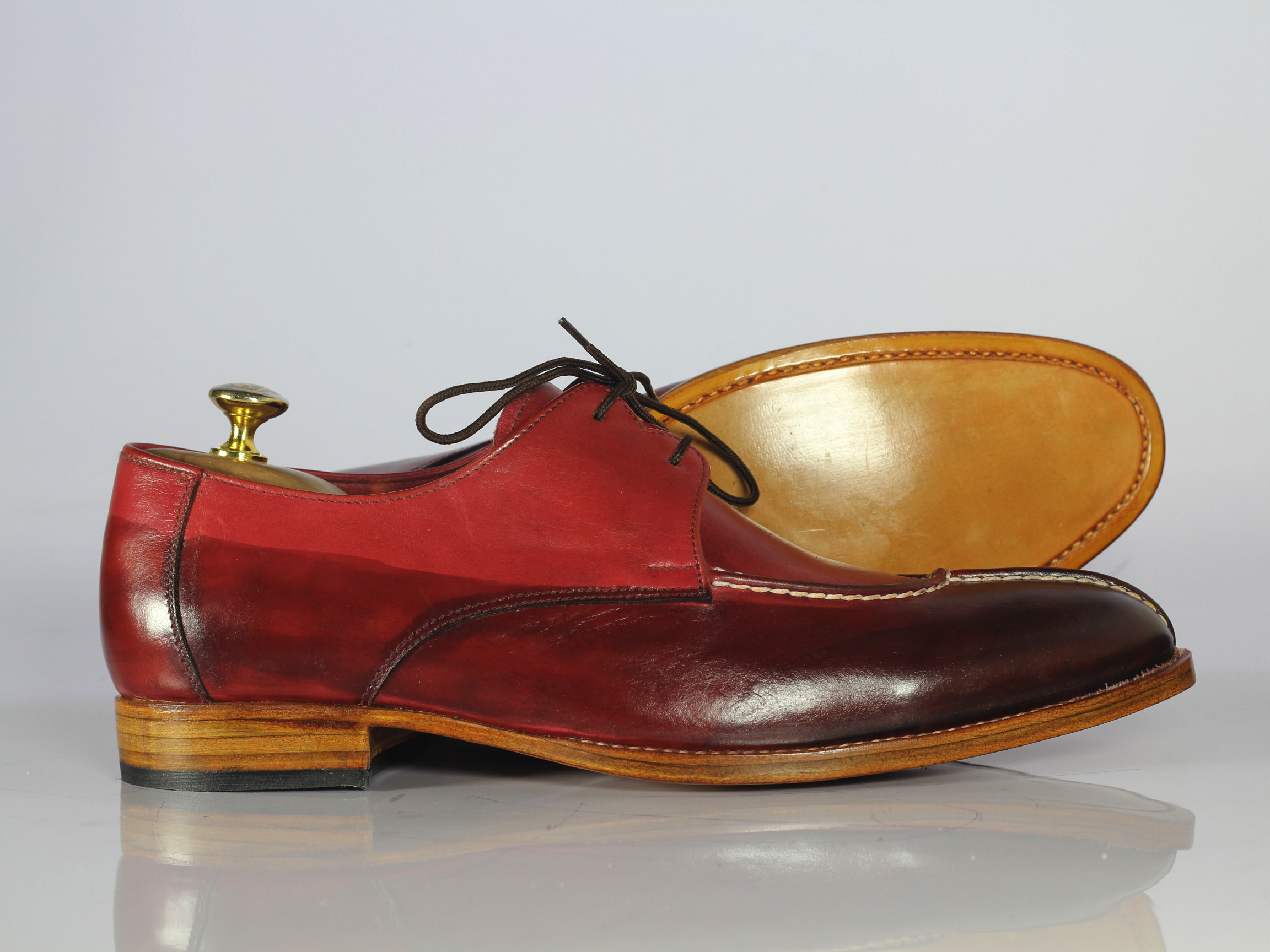 Handmade Men's Split Toe Shoes, Men's Burgundy Lace Up Leather Shoes