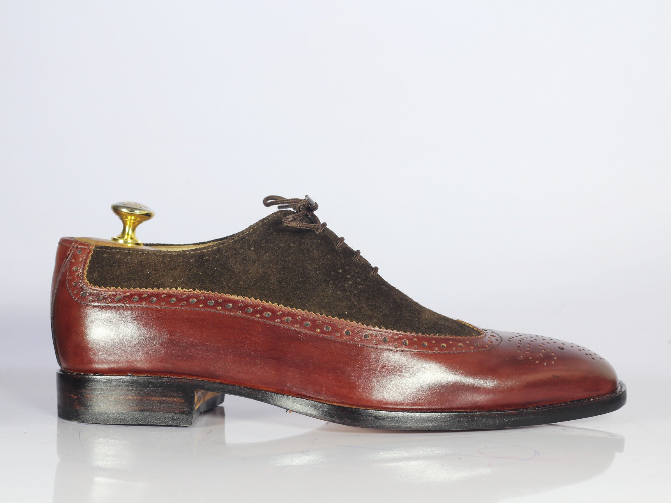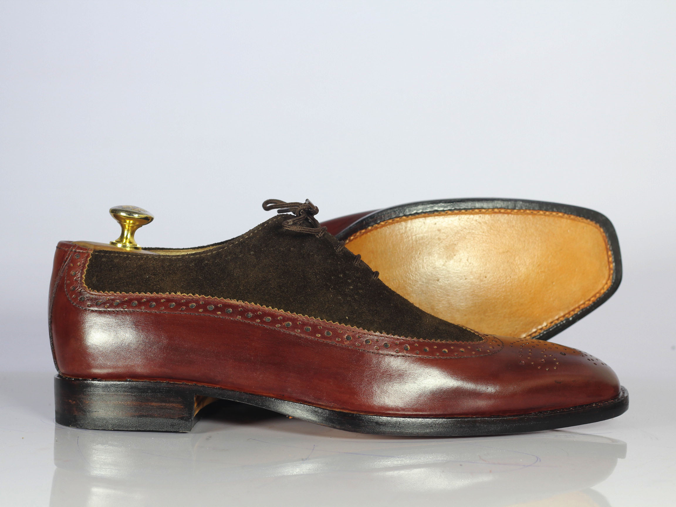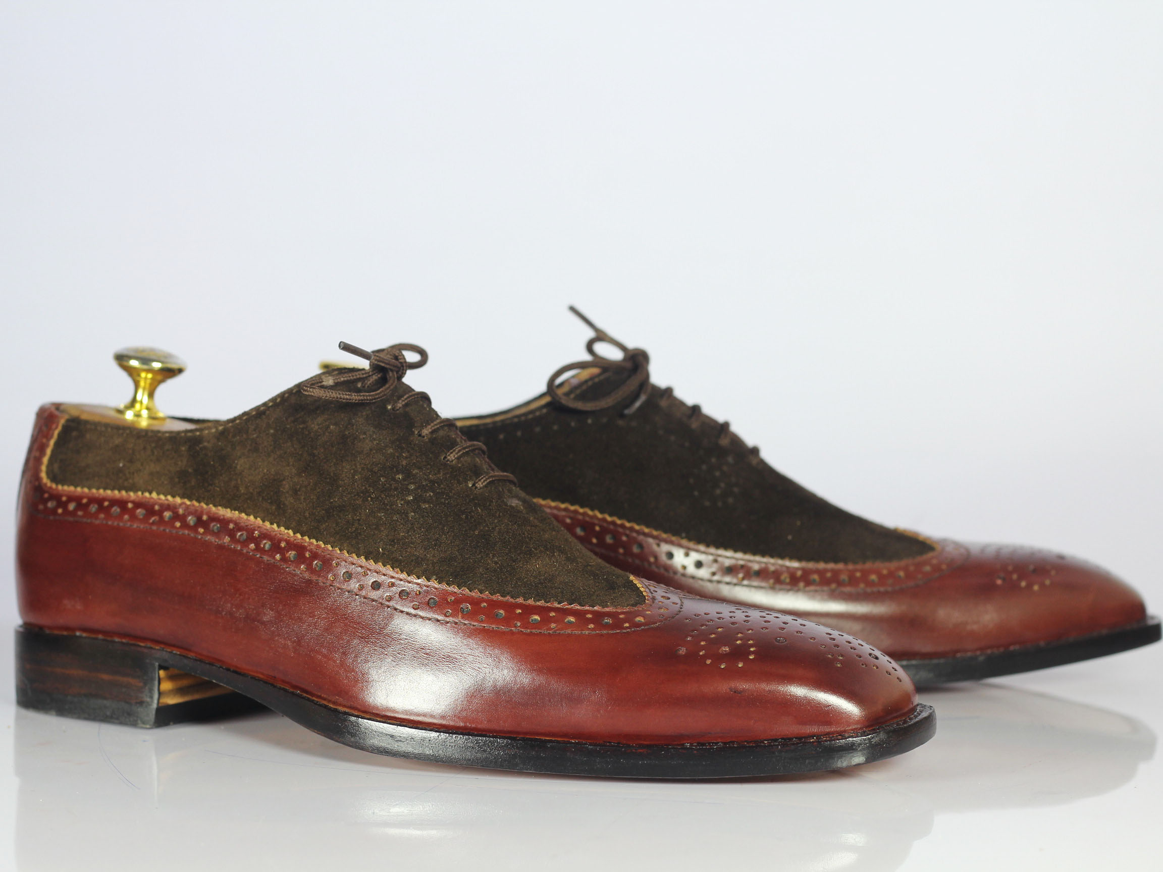 Handmade Brown Leather Suede Wing Tip Shoes Stylish Lace Up Shoes For Men's