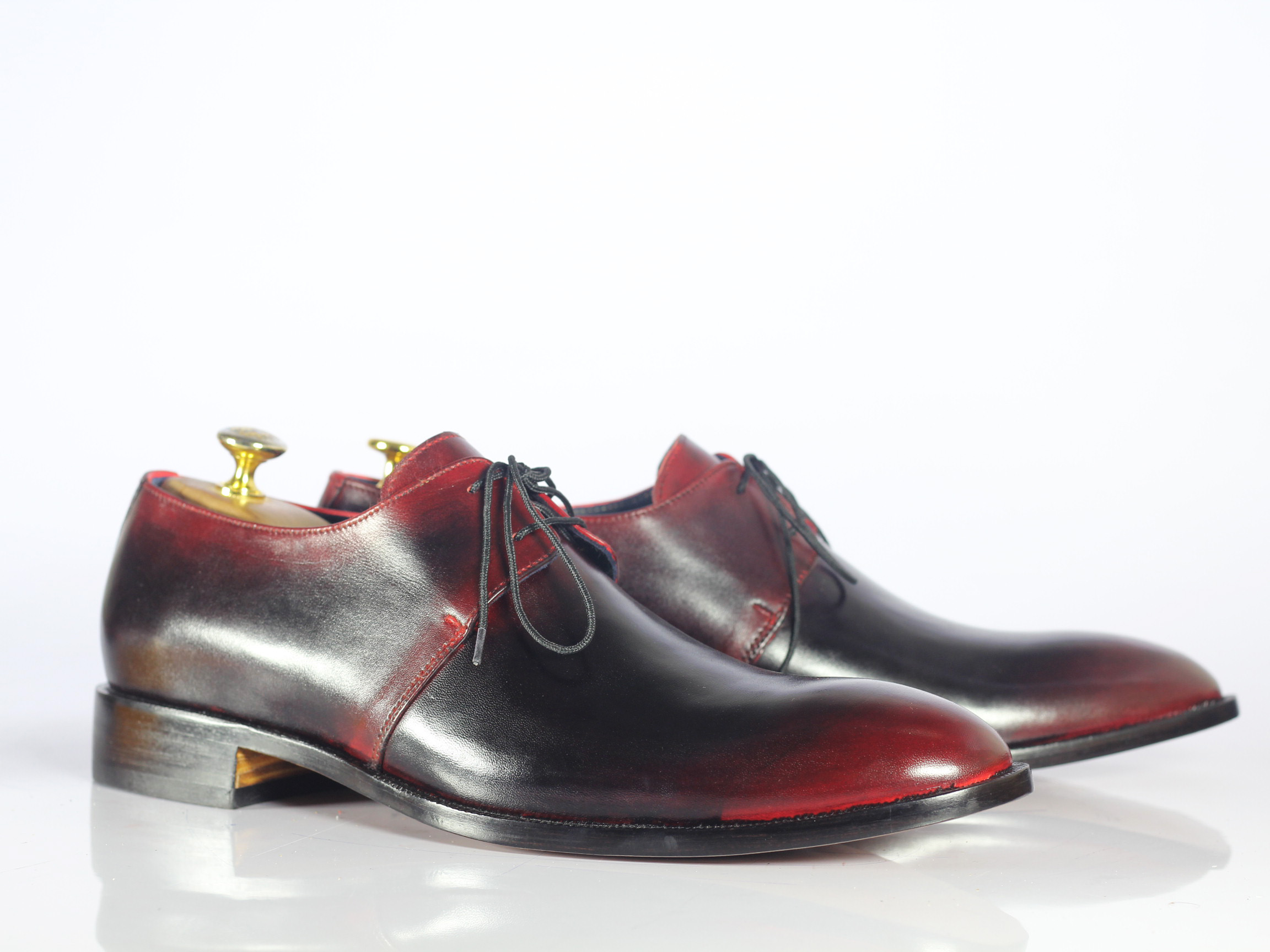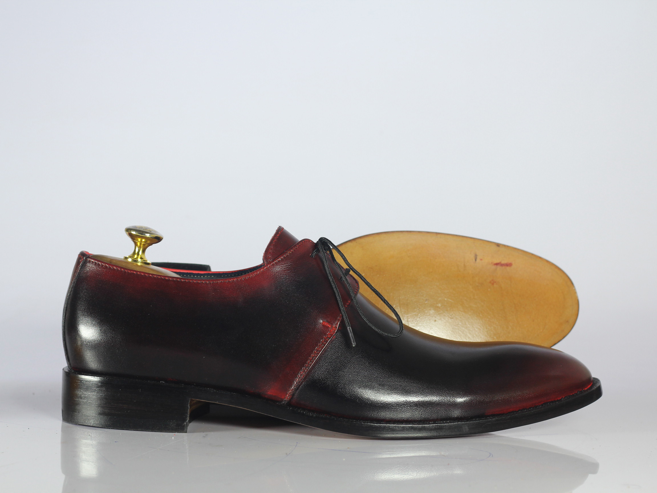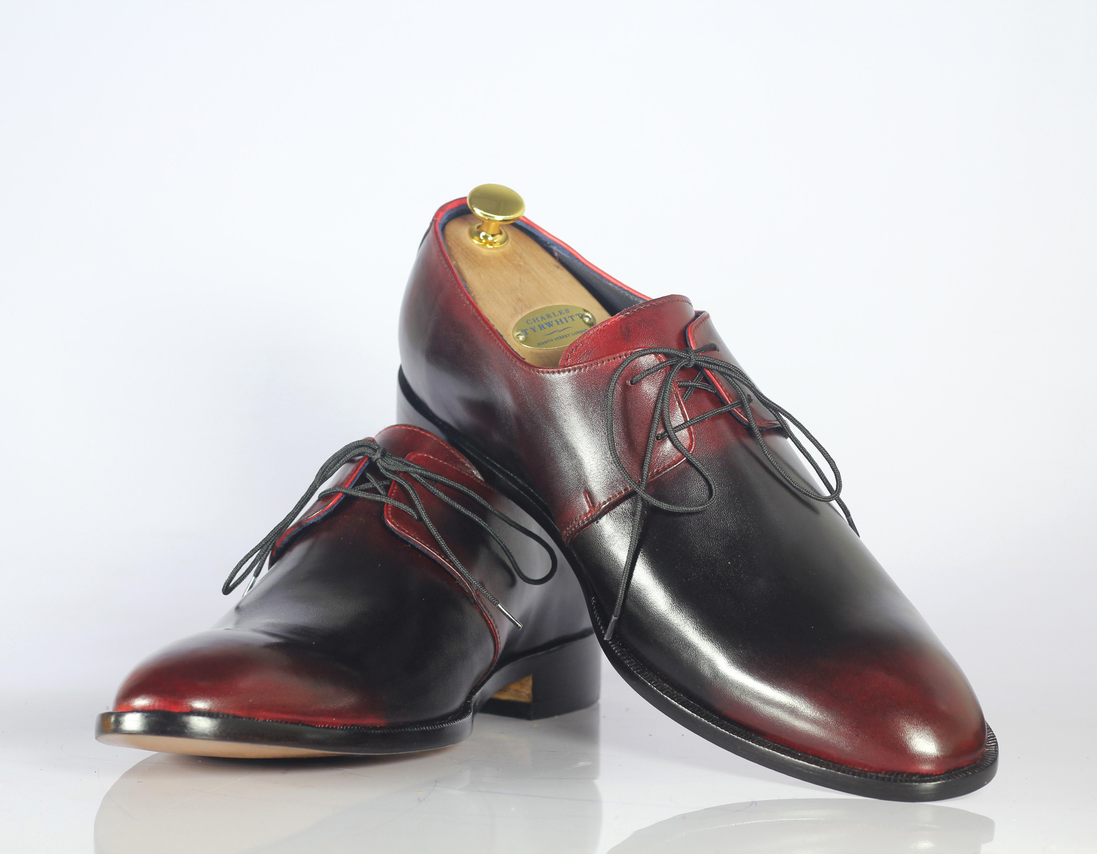 Handmade Tone Black Leather Lace Up Shoes Stylish Shoes For Men's