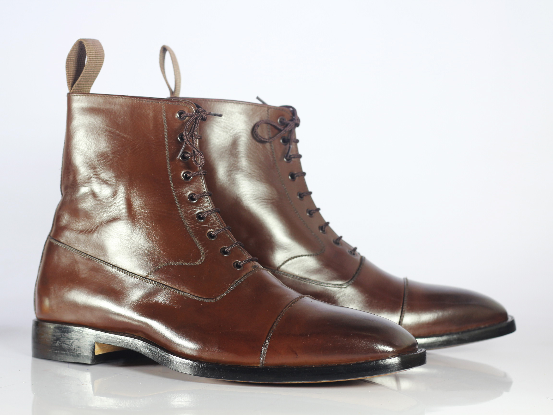 Handmade Men's Brown Ankle High Boot, Men's Leather Cap Toe Lace Up Boot