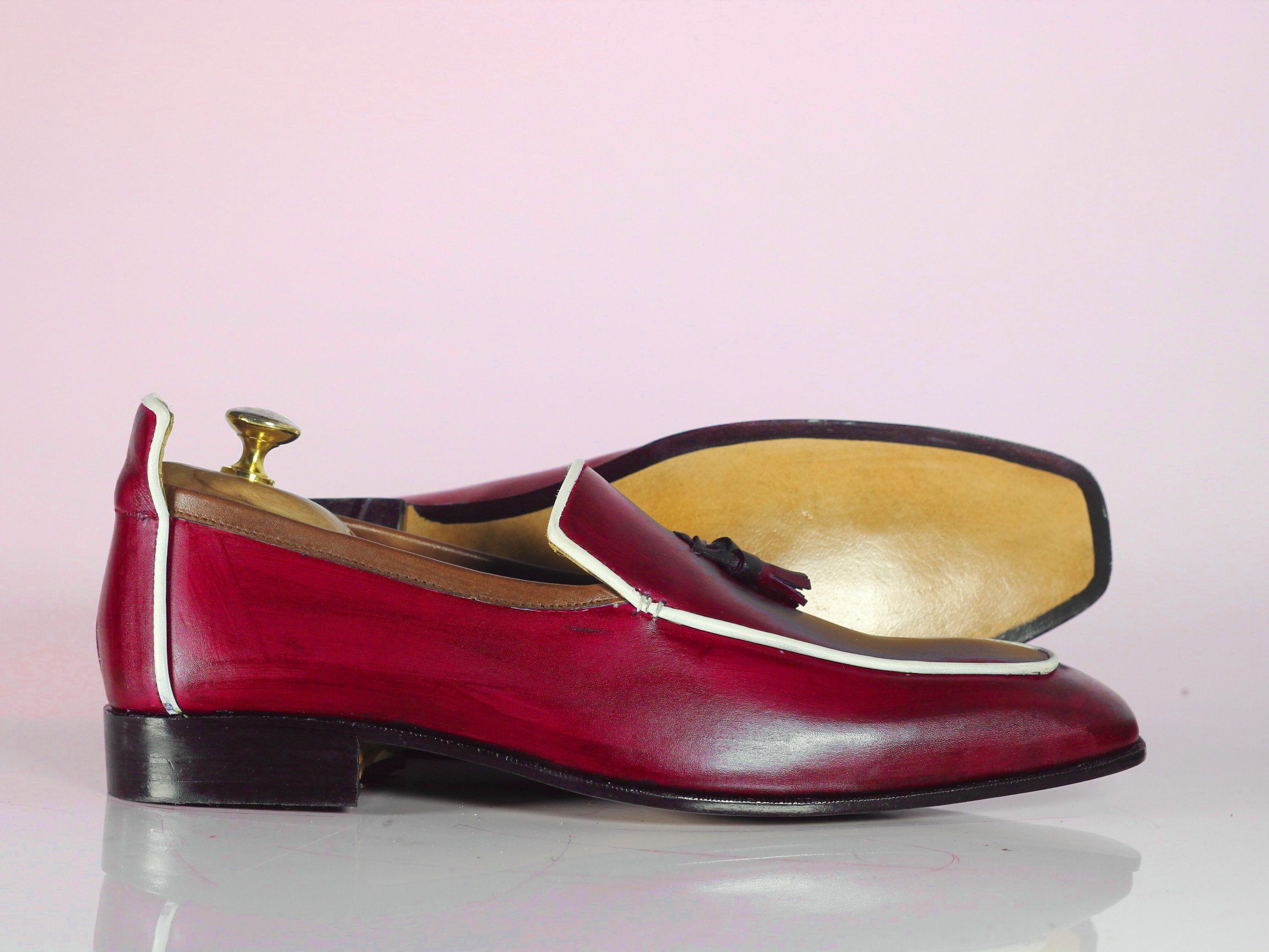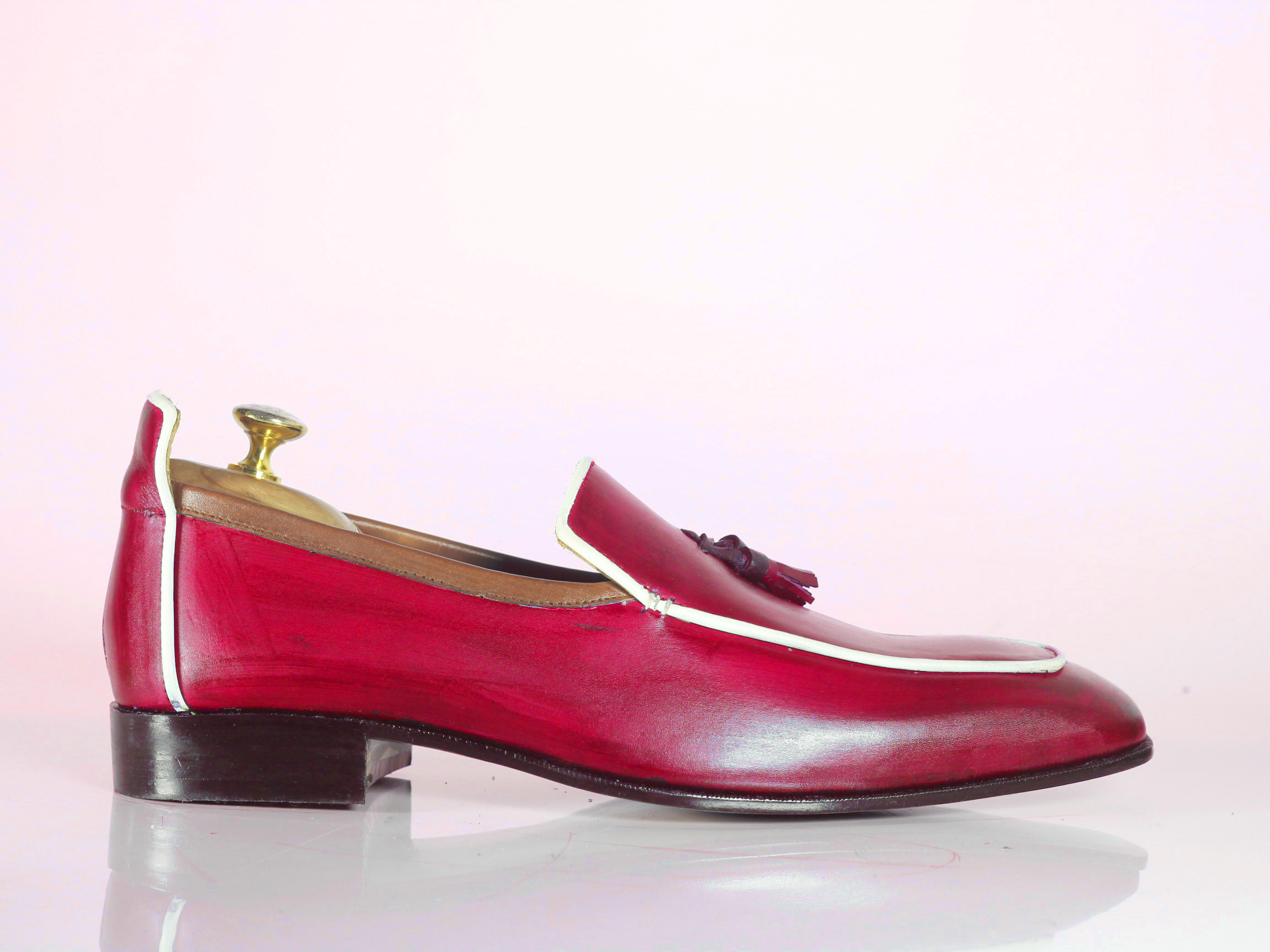 Handmade Reddish Pink Leather Tussles Loafers Shoes Stylish Men's Shoes