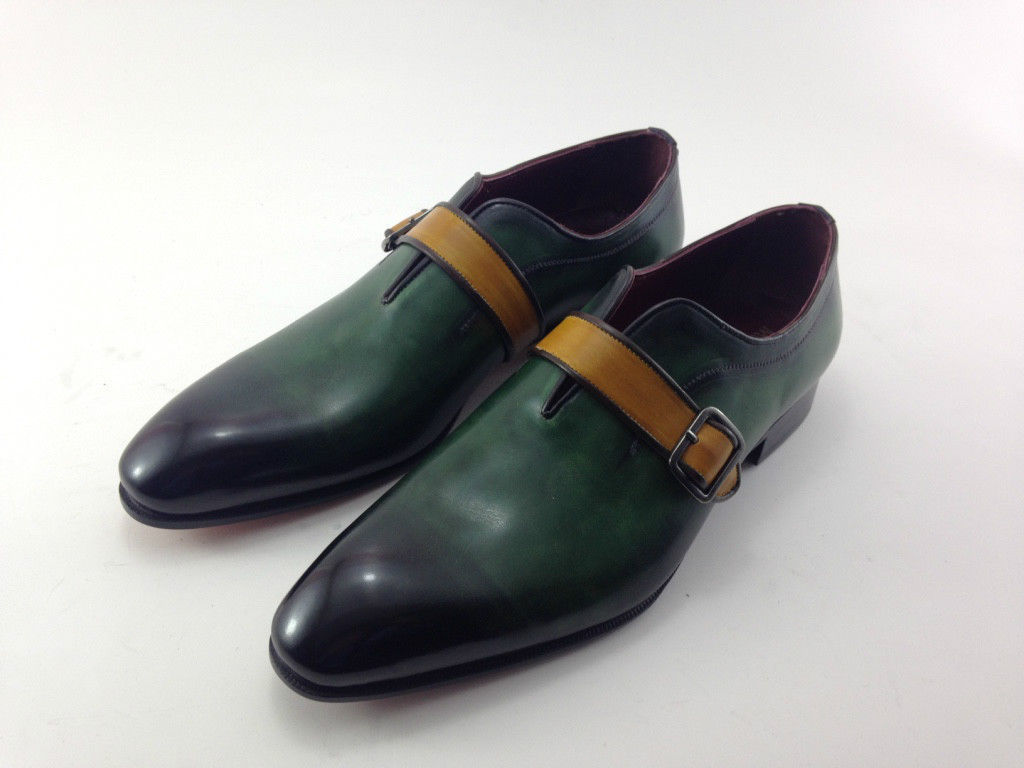 Men's Monk Strap Shoes, Men's Green Leather Dress Shoes
