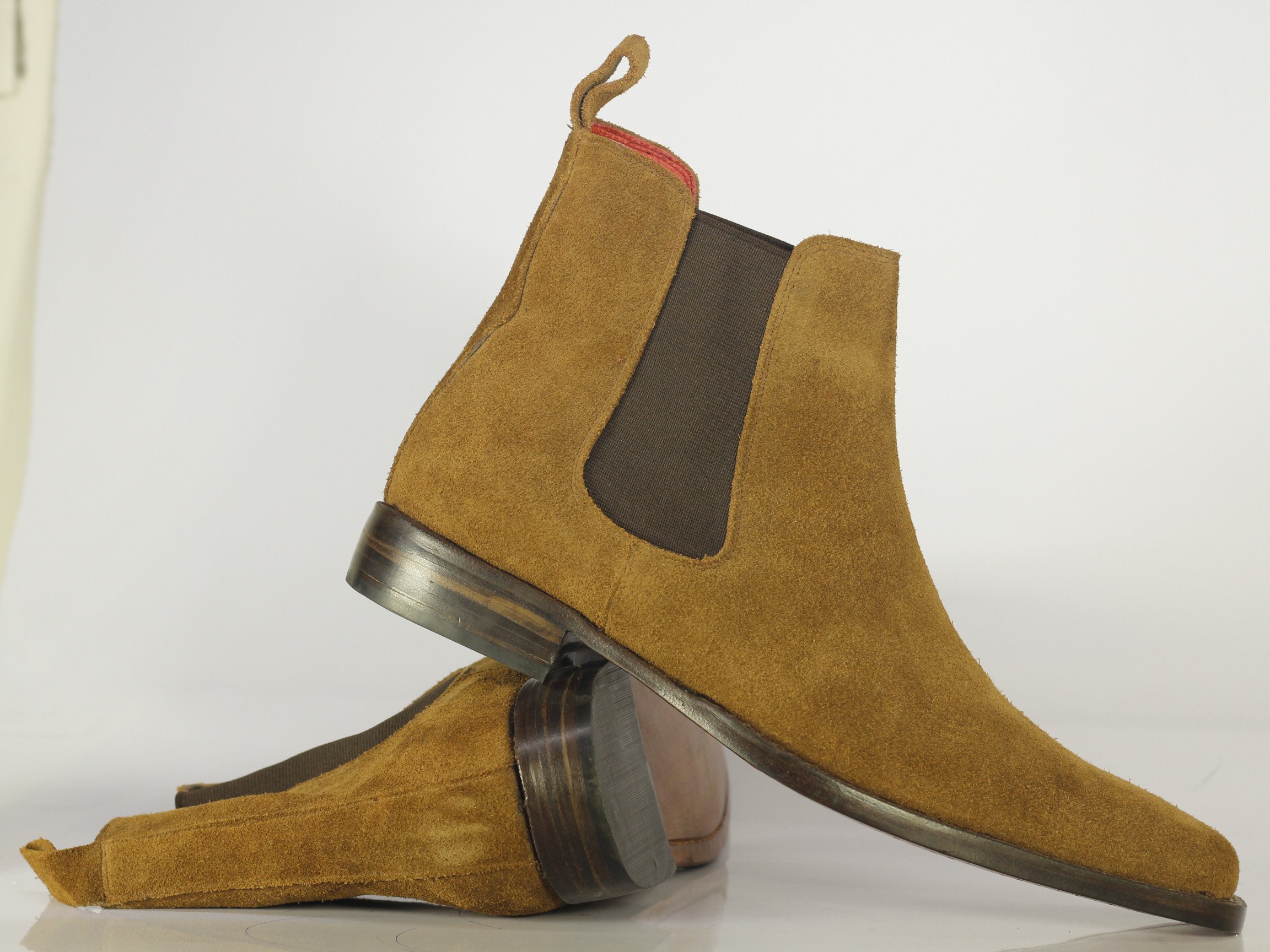 Men Tan Chelsea Boots, Men Ankle Boot, Men Dress Boots