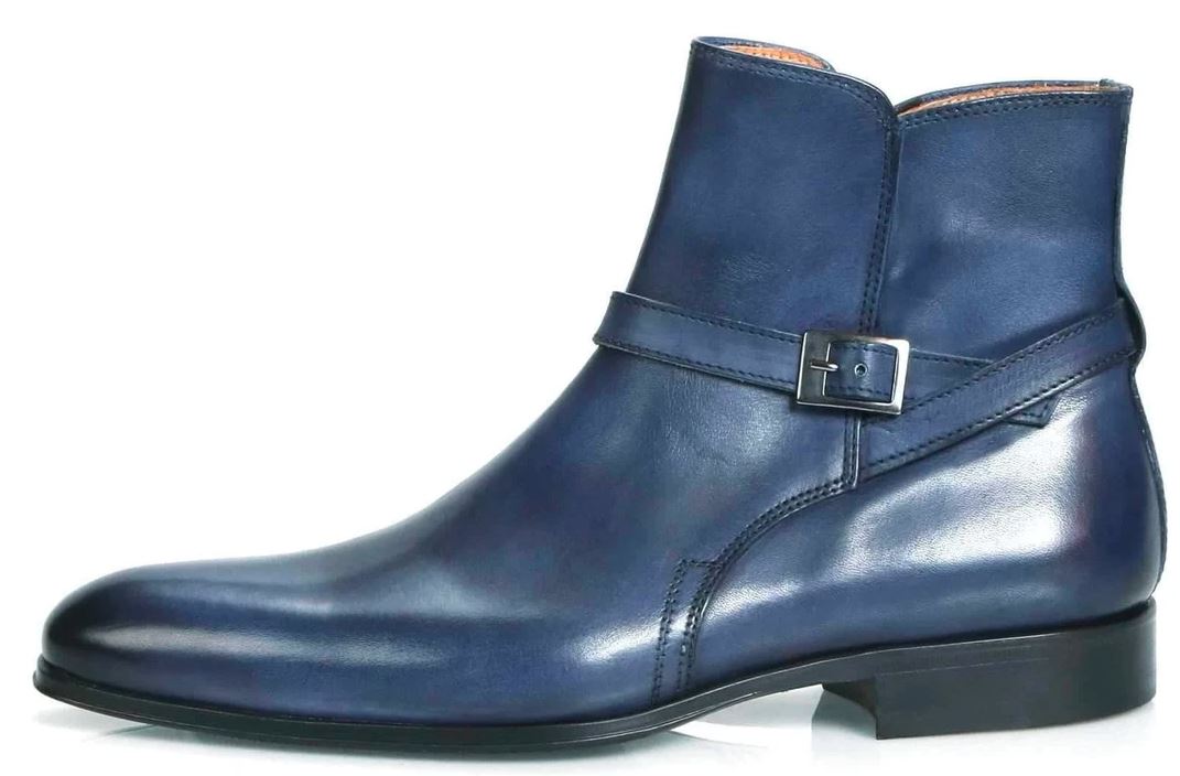 Men's Blue Leather Boots, Jodhpurs Ankle Boots