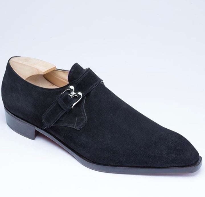 Men's Navy Blue Monk Straps Suede Dress Formal Shoes