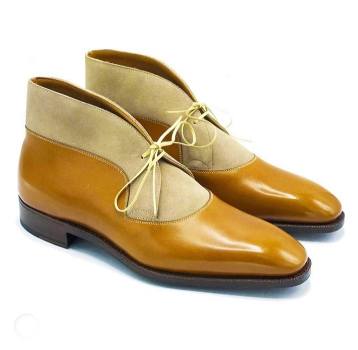 Men's Tan & Beige Boot Dress Leather Suede Half Ankle Lace Up Boot
