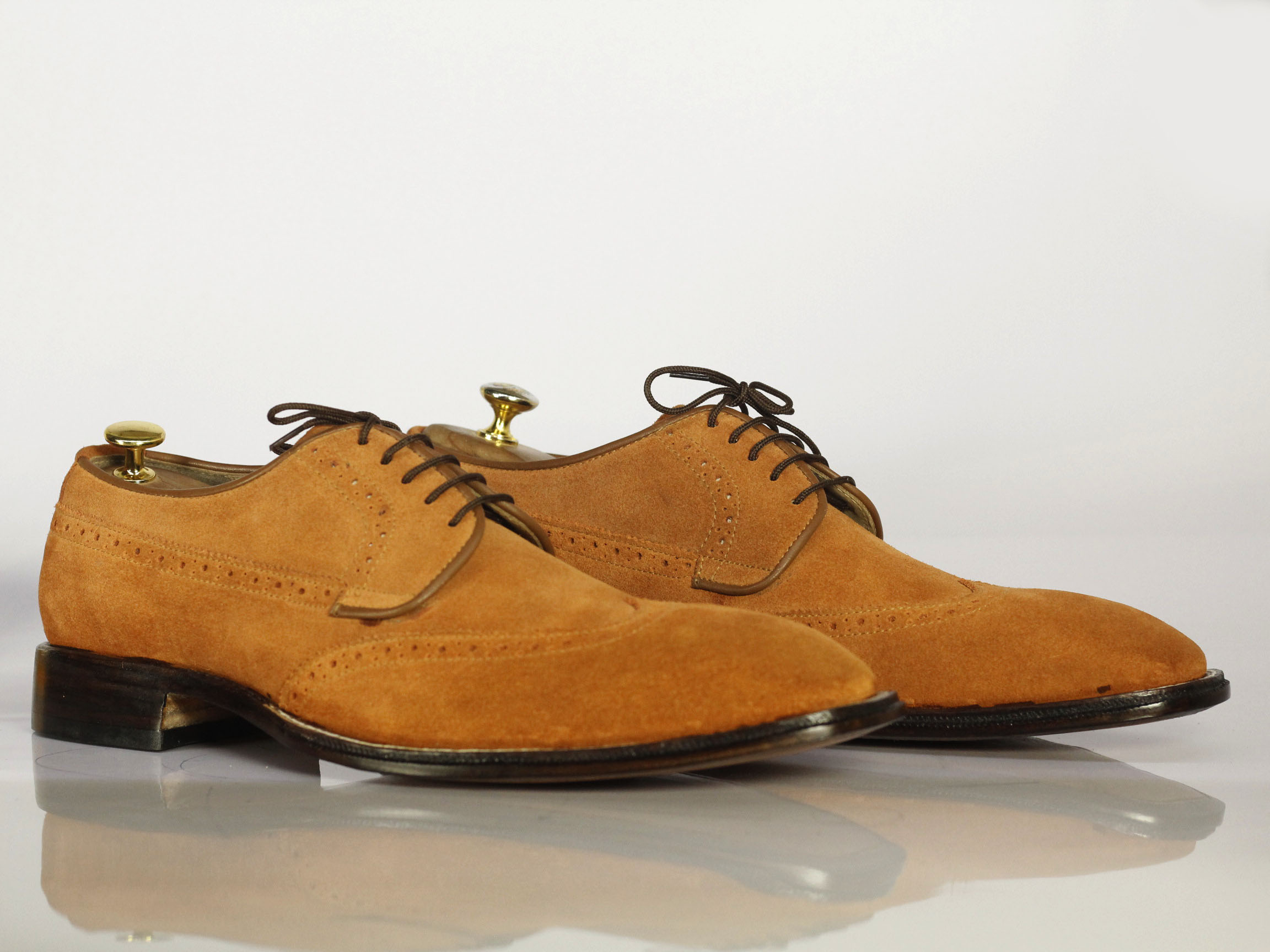 Men's Shoes Tan Leather Suede Whole Cut Lace Up Dress Shoes