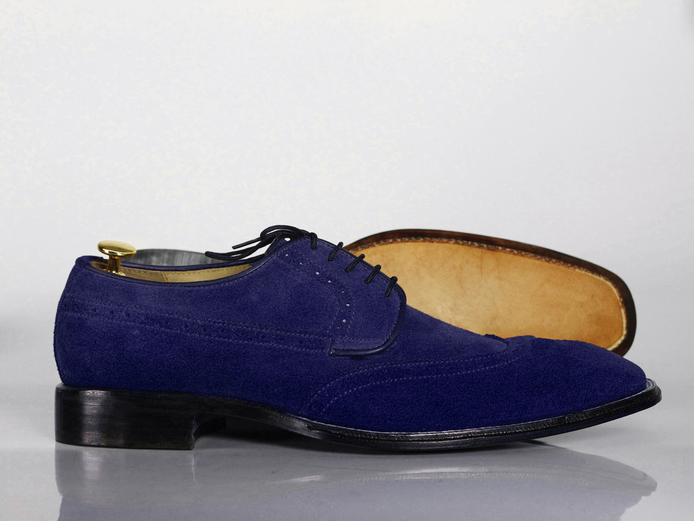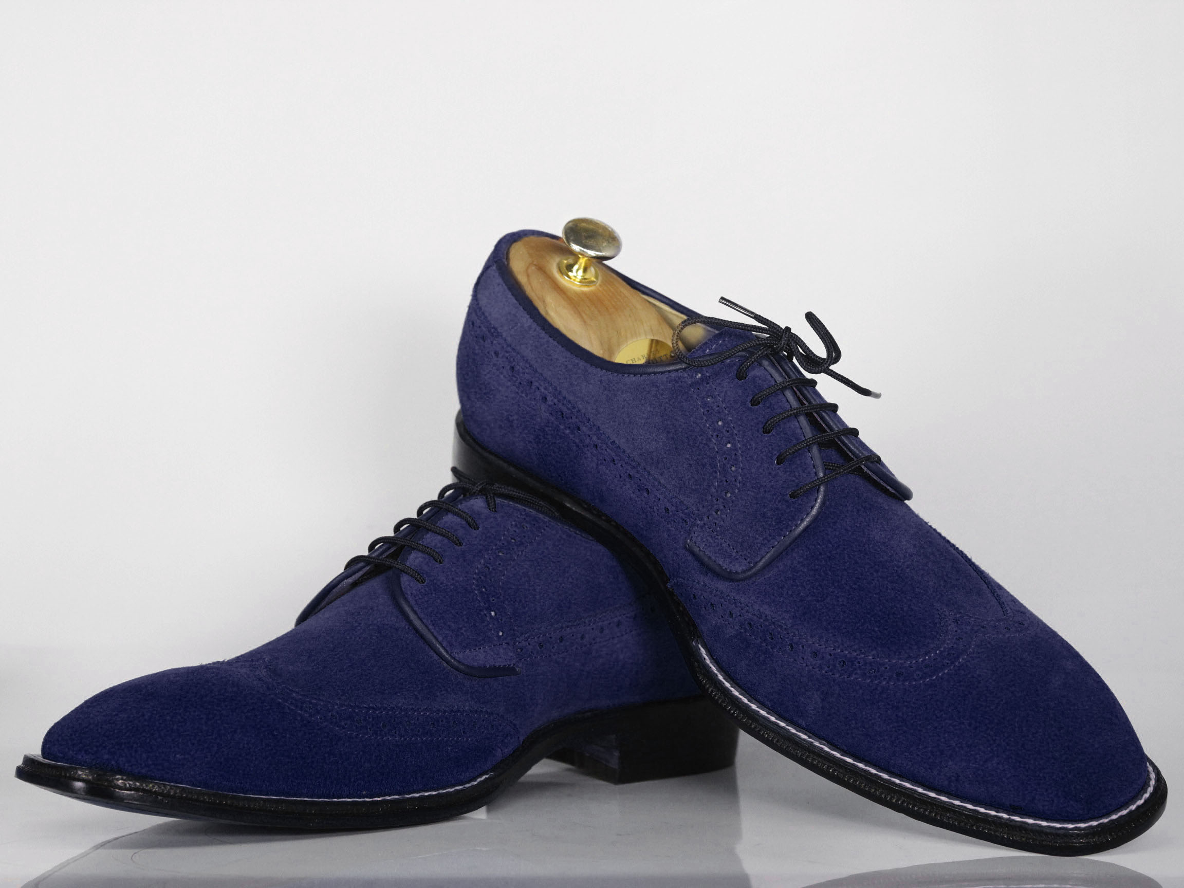 Men,s Blue Shoes, Wing Tip Suede Shoes,Lace Up Shoes