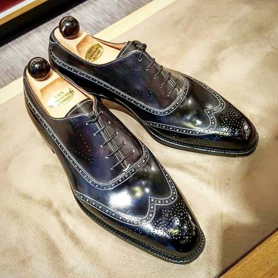 Men Black Shoes, Men's Wing Tip Dress Leather Shoes 2020