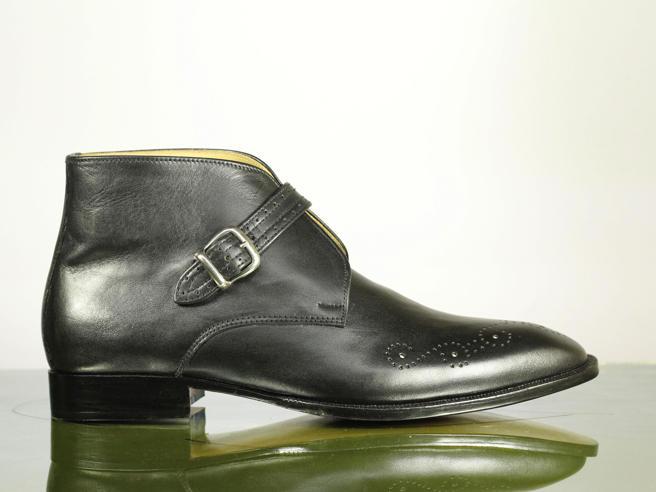 handmade Men's Half Ankle Monk Boot, Men's Black Leather Casual Boot.