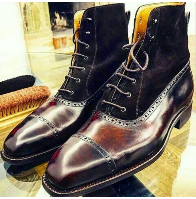 Men,s Black & Brown Cap Toe Leather Suede Ankle Boots. Men Dress Formal Fashion Boots
