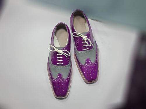 men's 2 Tone Purple Gray leather shoes Men Dress Formal Wing Tip Shoe