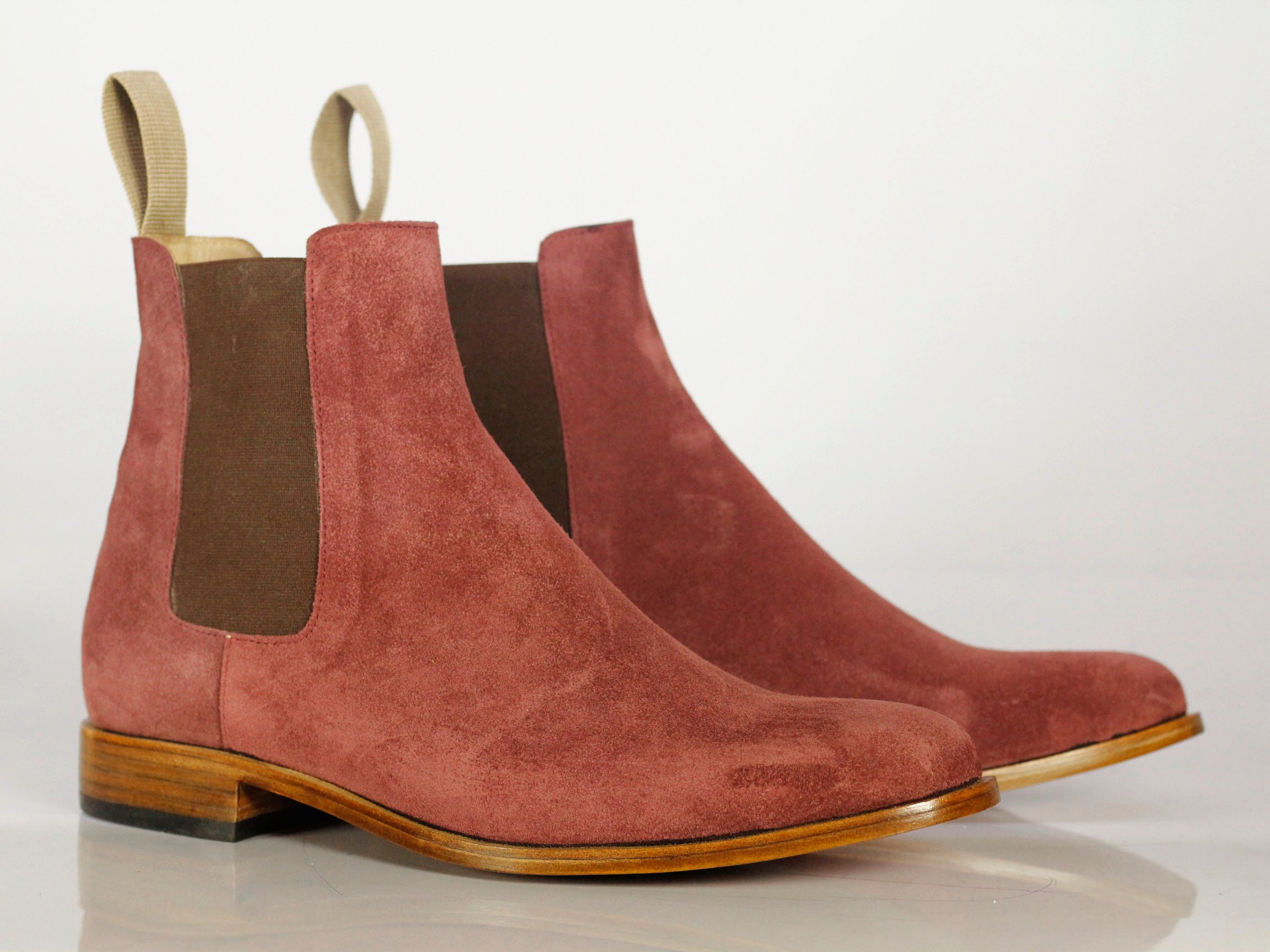 Men Pink Chelsea Boots, Men Ankle Boot, Men Dress Boots