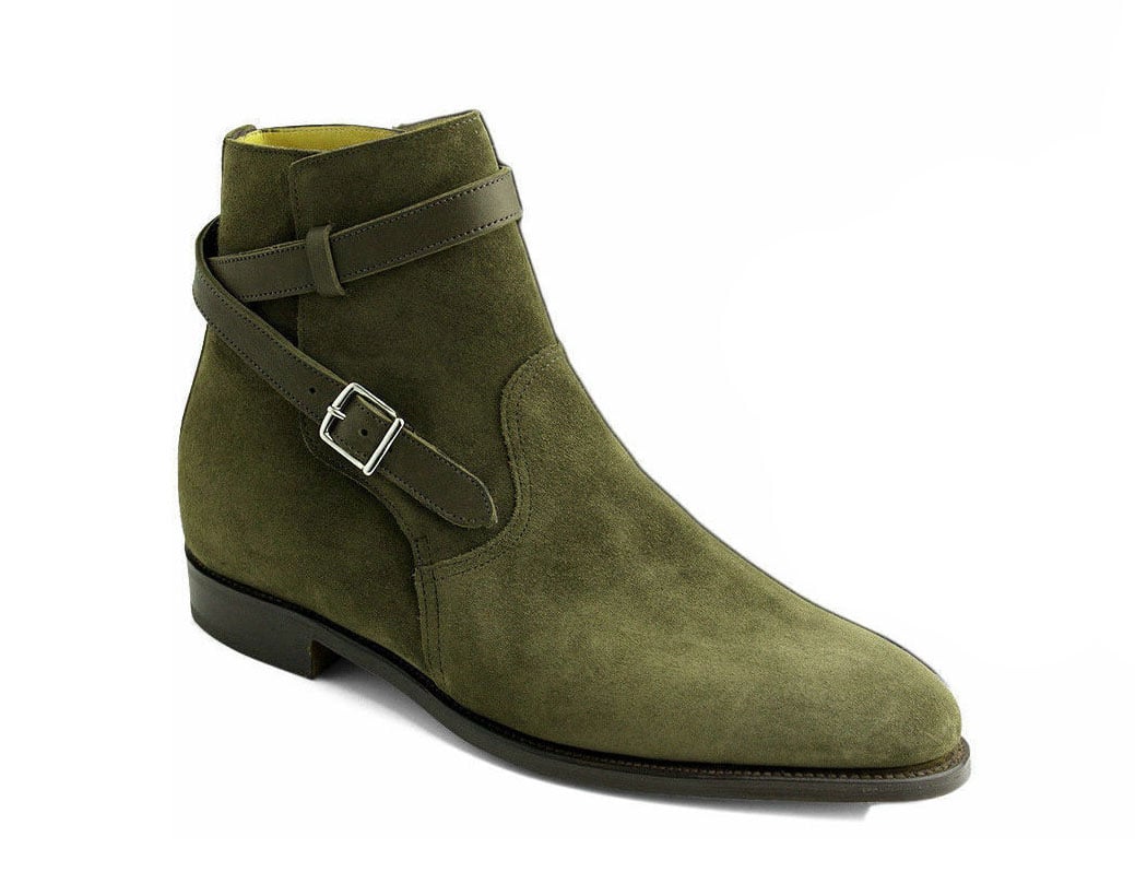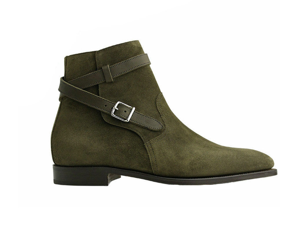 Men,s Olive Green Jodhpurs Suede Ankle Boots. Men Dress Buckle Fashion Boot