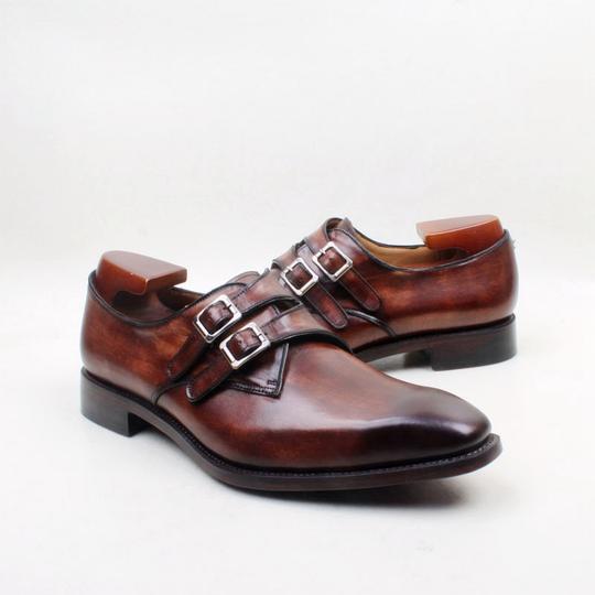 Handmade Brown Double Monk Leather Shoes, Men's Monk Strap Formal Shoes