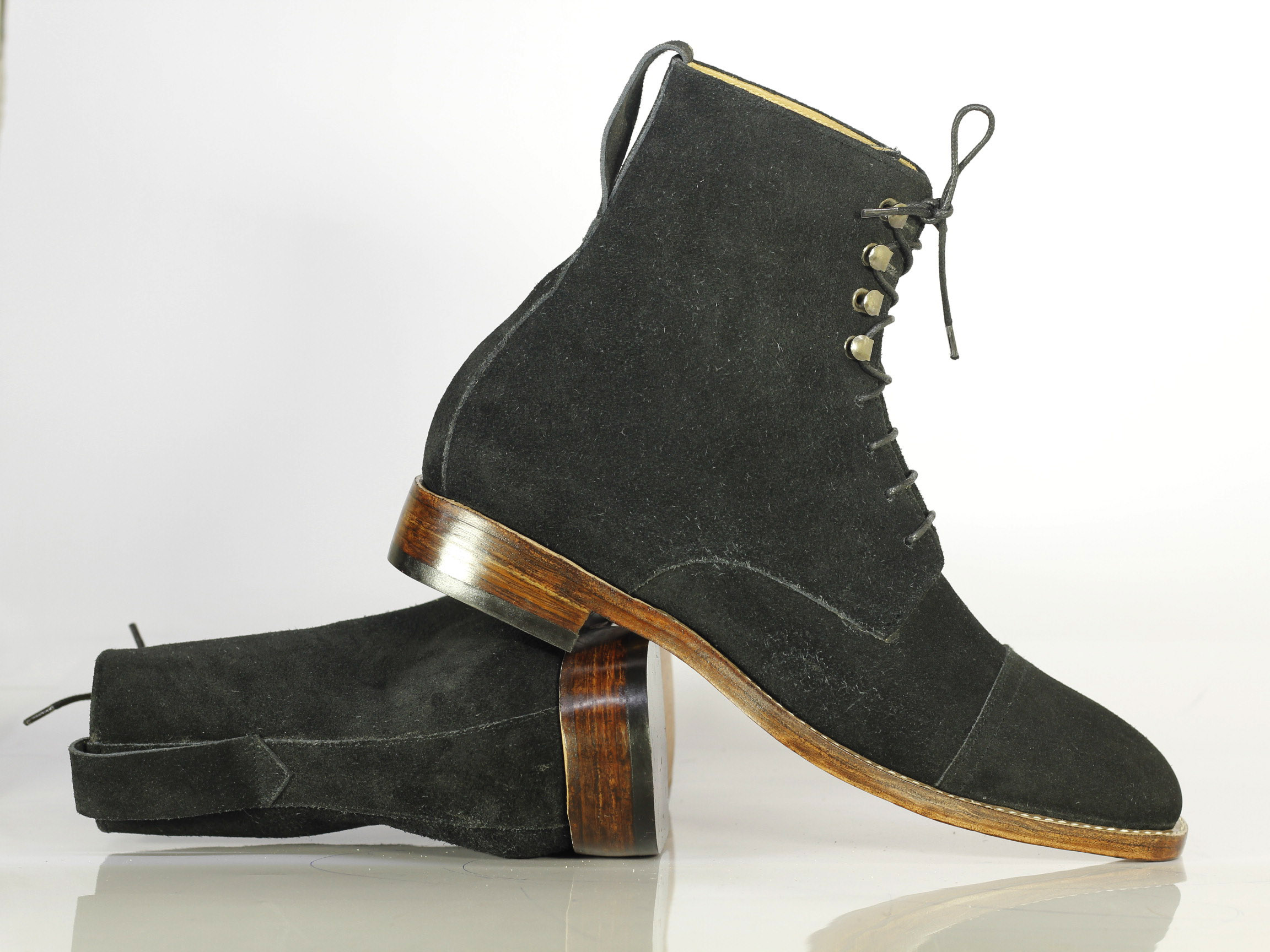 Bespoke Black Cap Toe Ankle Boots Men's Suede Boot