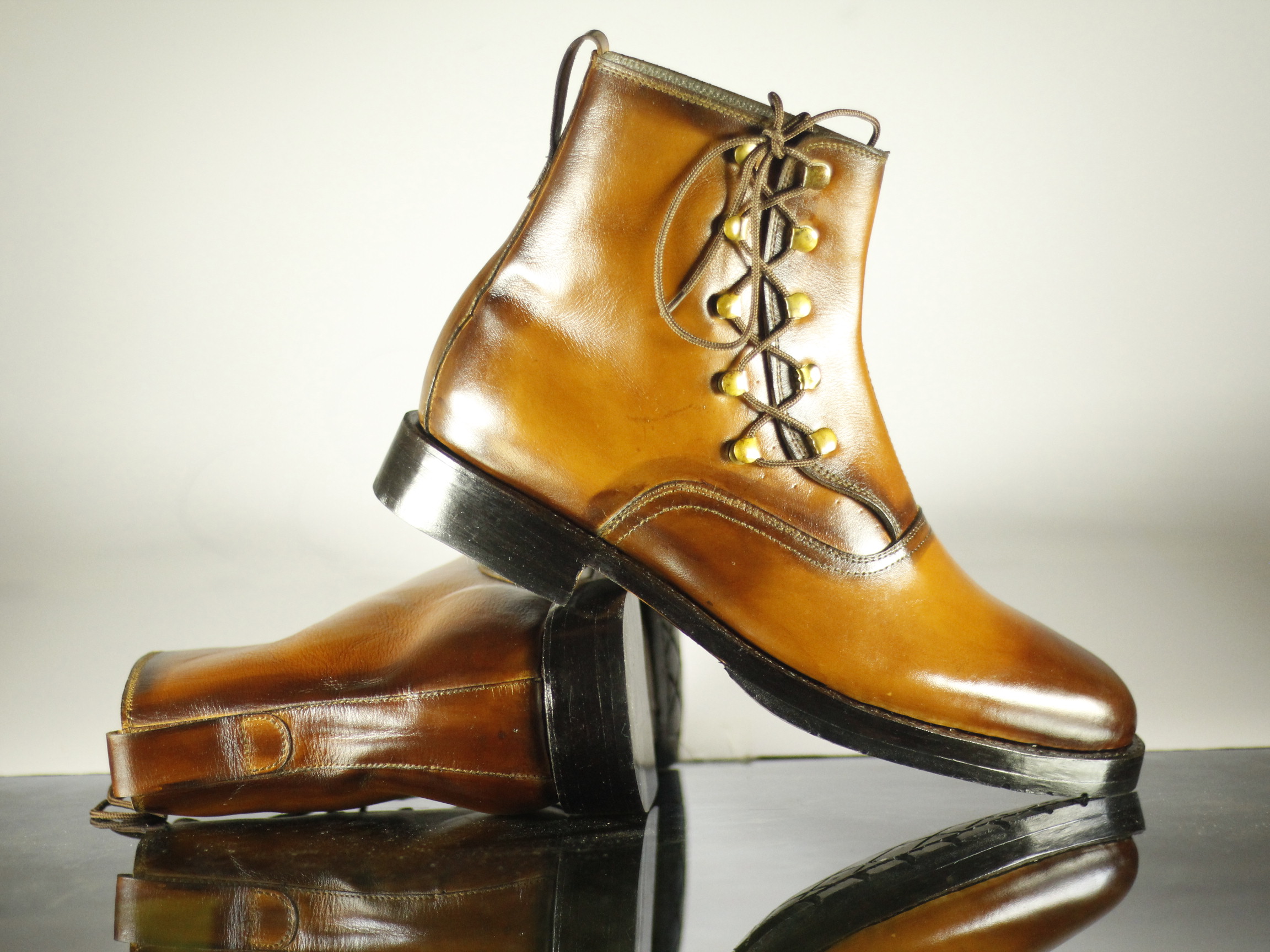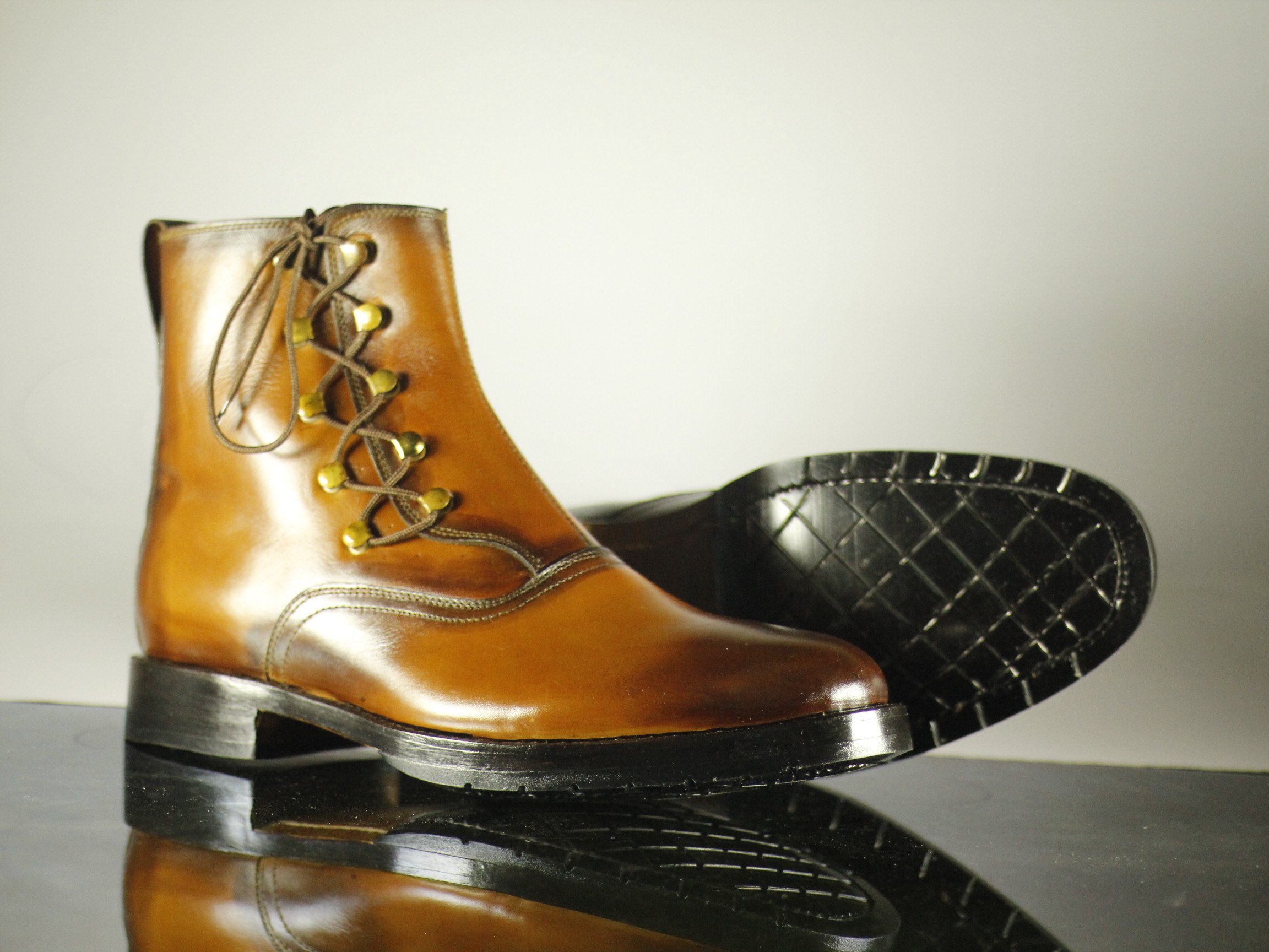 Men Fashion Elegant Tan Boots, Cross Lace Up Boot, Ankle Boot,Men's Boot,Dress Boot,Leather Boot
