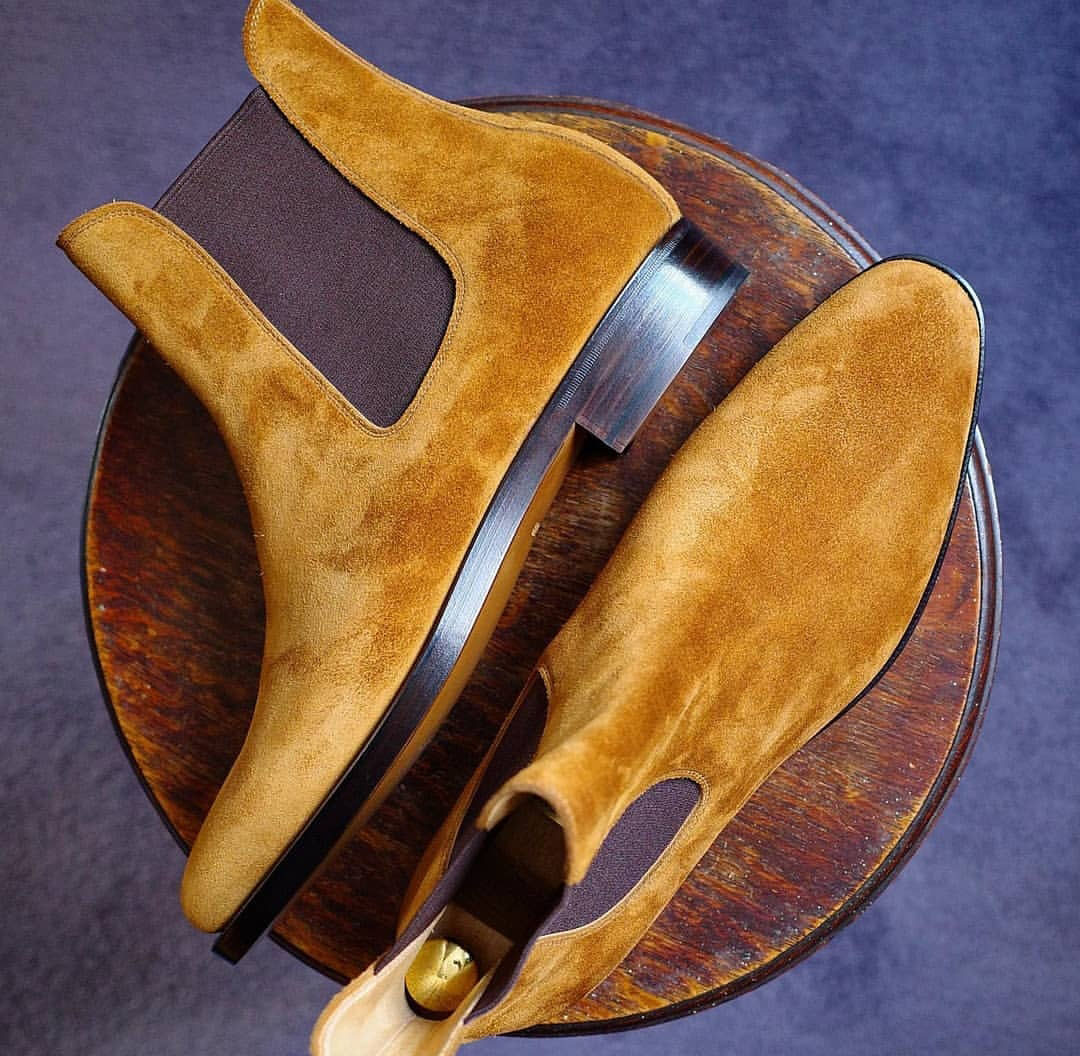 Men's Handmade Ankle Boot,Chelsea Boot,Suede Boot,Tan Boor,Dress Boot