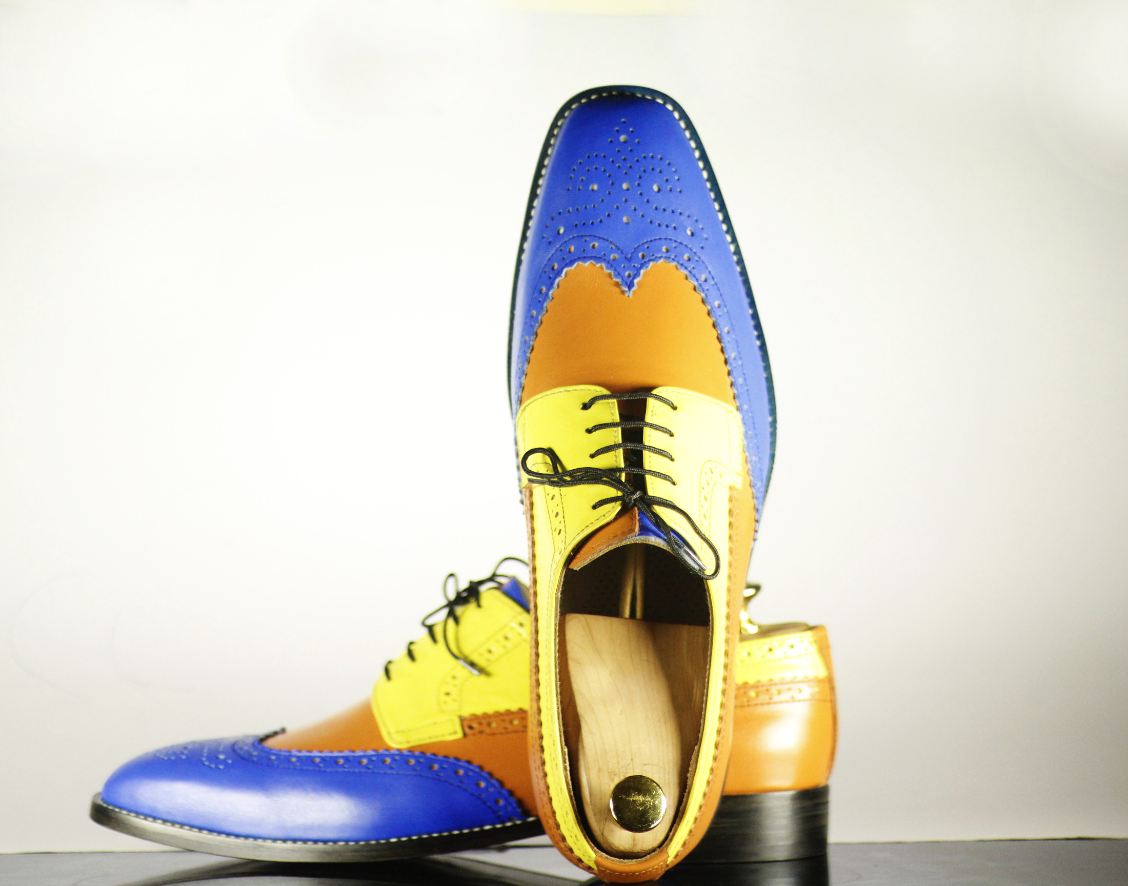 Handmade Men's Casual Shoes, Men's Multi Color Leather Wing Tip Lace Up Formal Shoes.