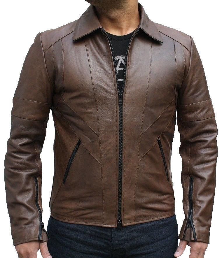 Men's Brown Slim Fit Fashion Leather Jacket Brown Biker Leather Fashion Jacket