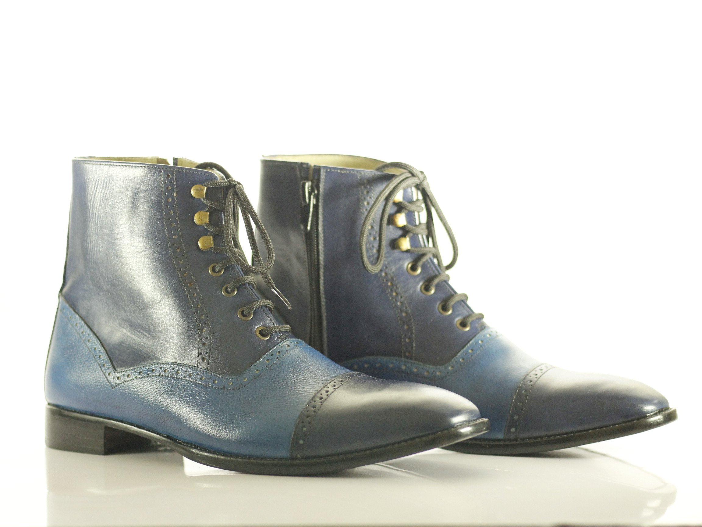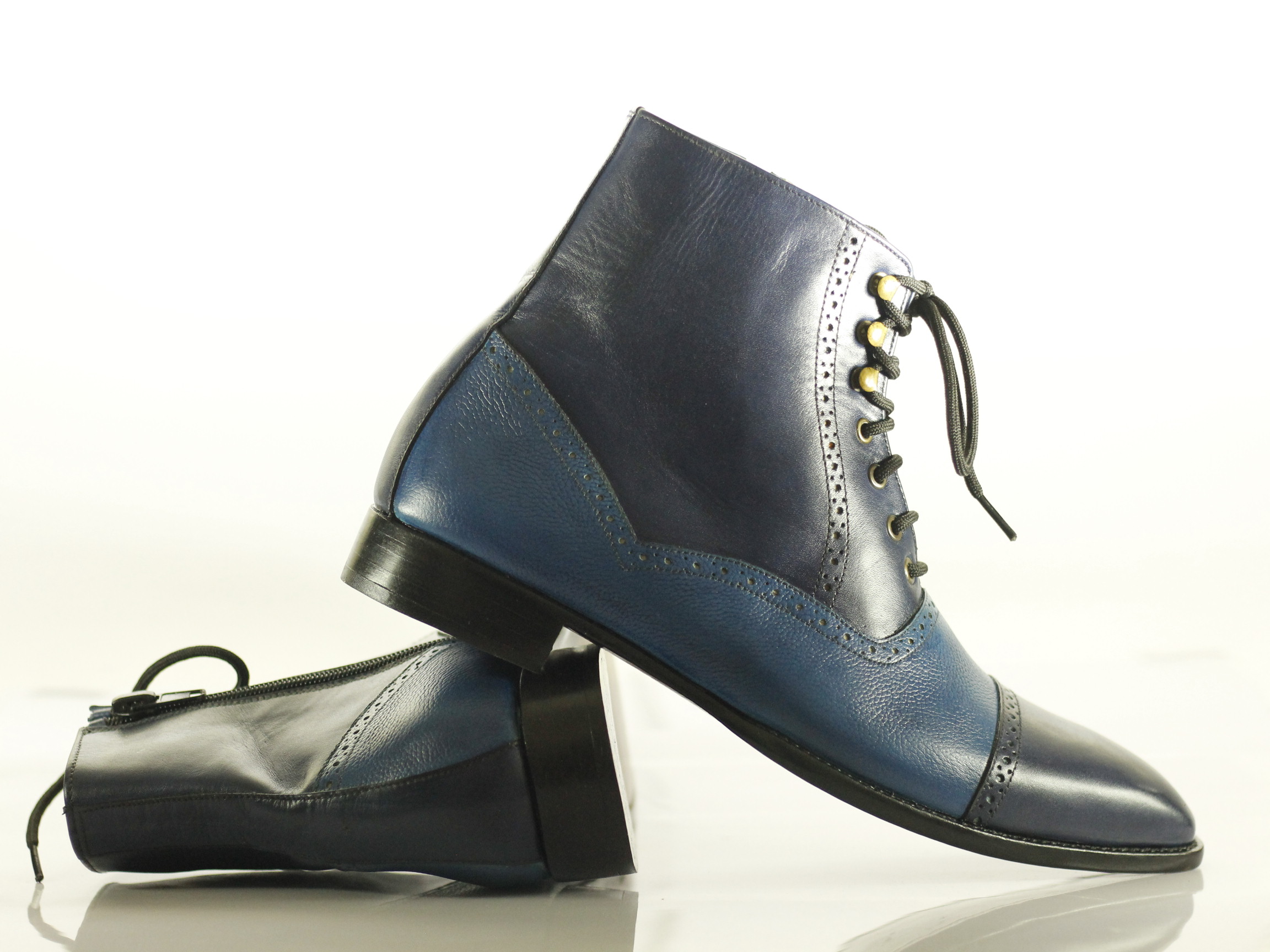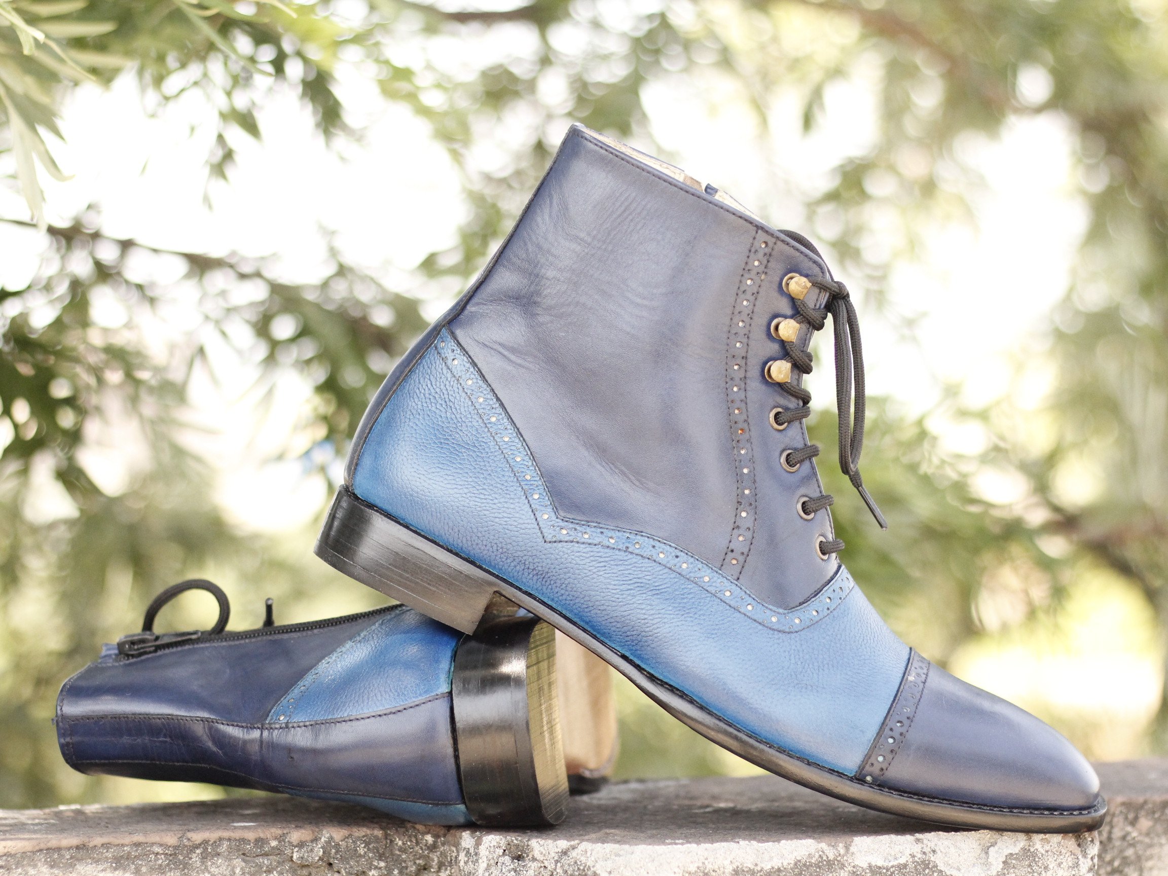 Bespoke Blue Cap Toe Ankle Leather Lace Up Men's Boot