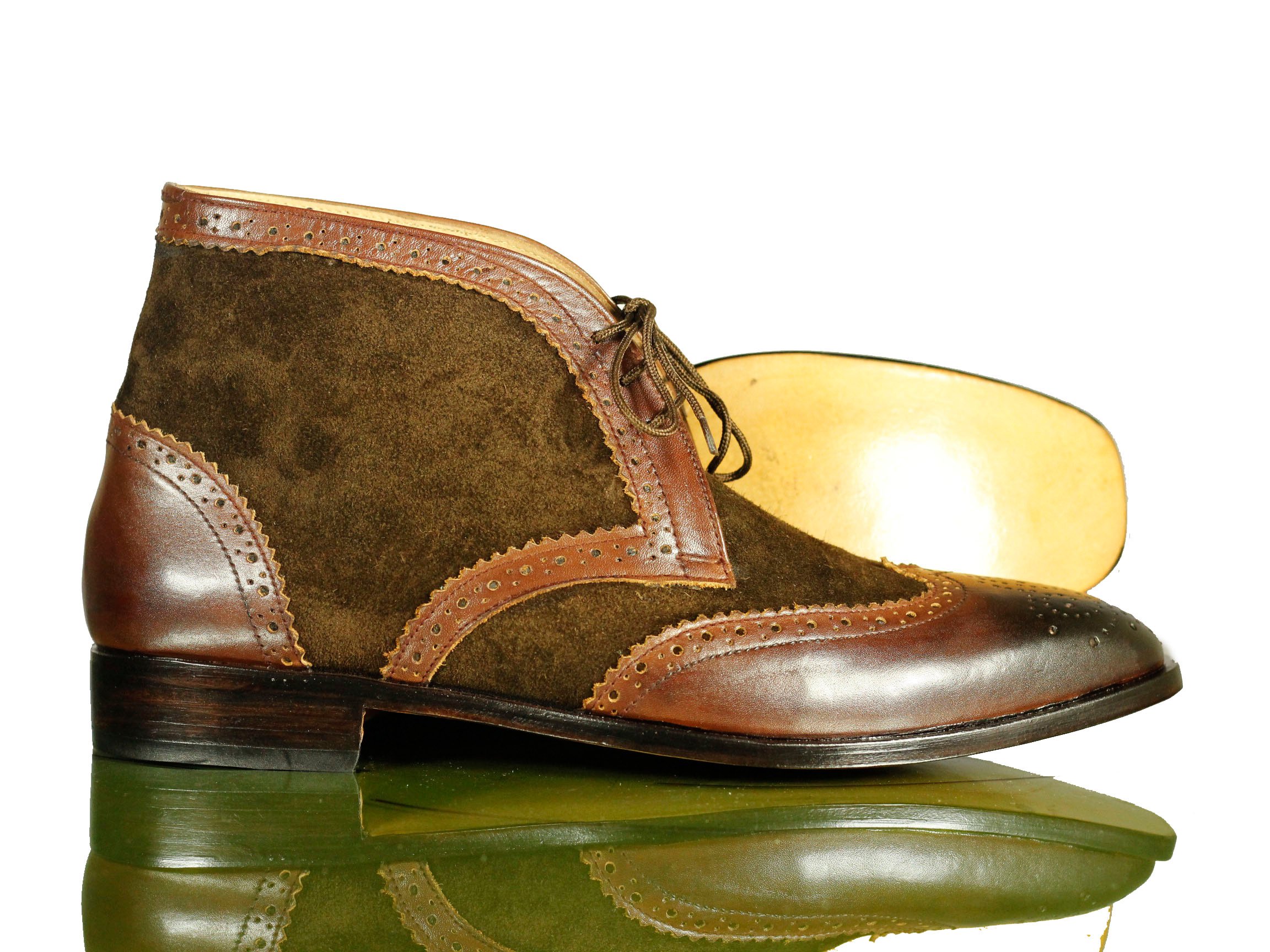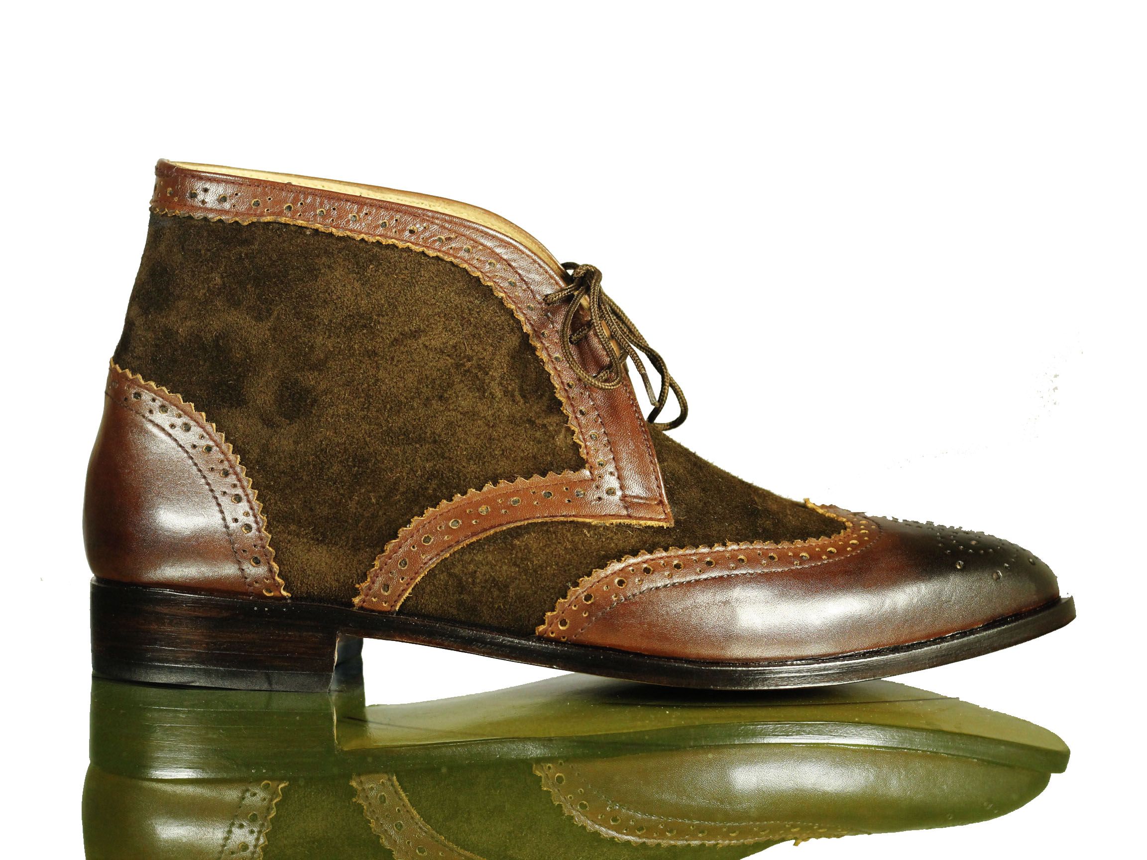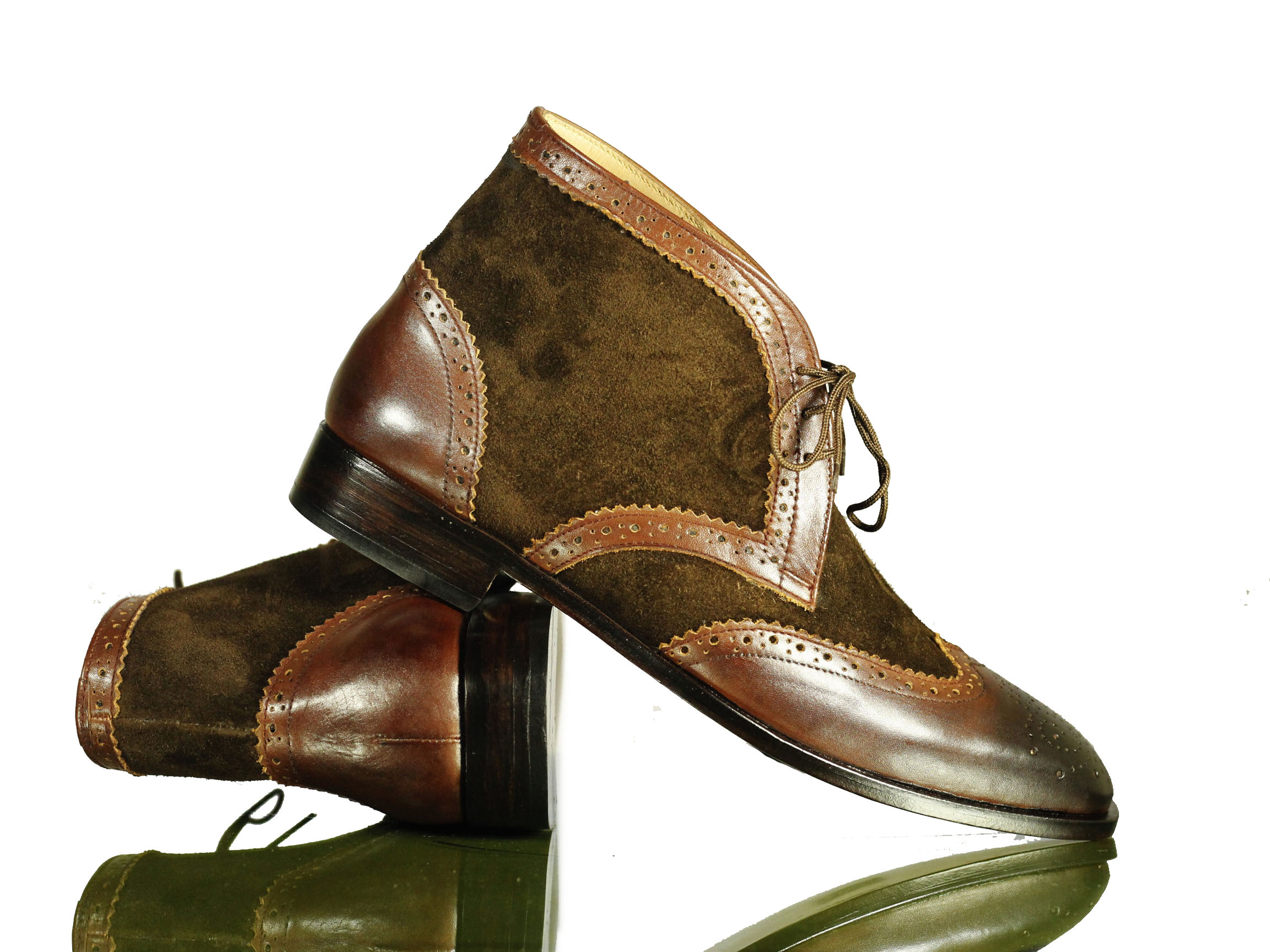Hand Crafted Men's Casual Boot, Men's Brown Wing Tip Leather Suede Boot