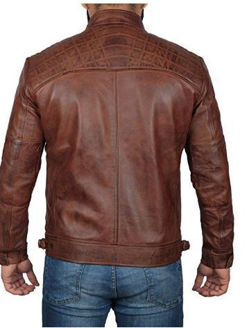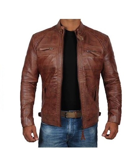 Brown Leather Jacket Cafe Racer Real Lambskin Leather Distressed Biker Jacket