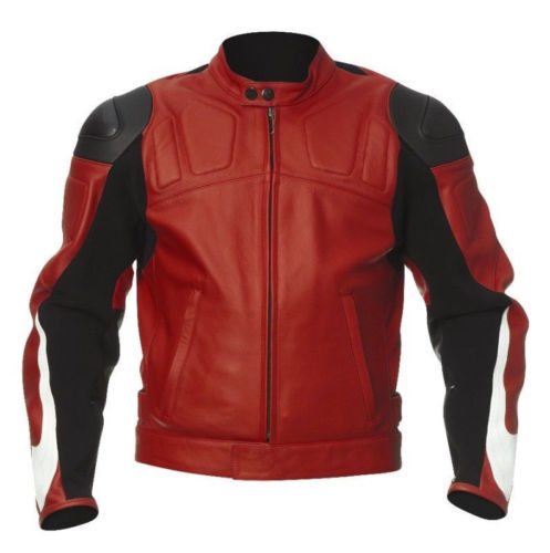 Men's Motorcycle Jackets Black Red Leather Racing Biker Protective Sports Zipper