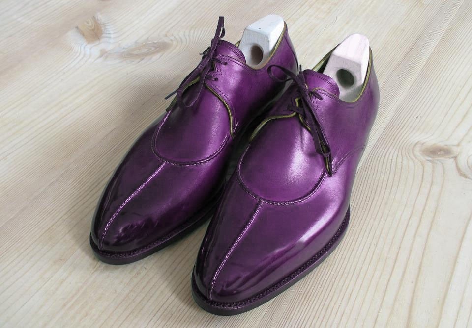 Handmade Purple Split Toe Leather Shoes,Oxford Men's Shoes