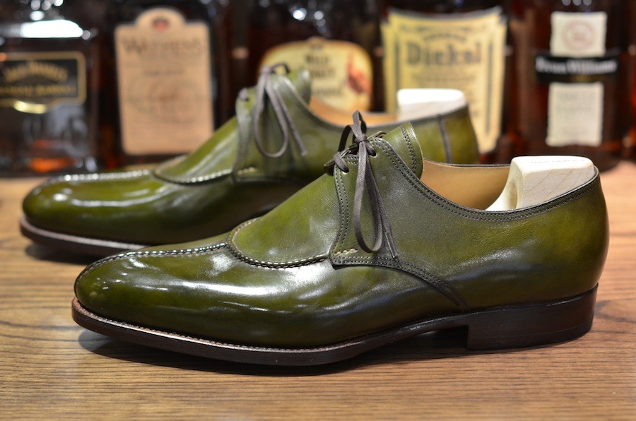 Handmade Olive Green Split Toe Leather Shoes,Oxford Men's Shoes