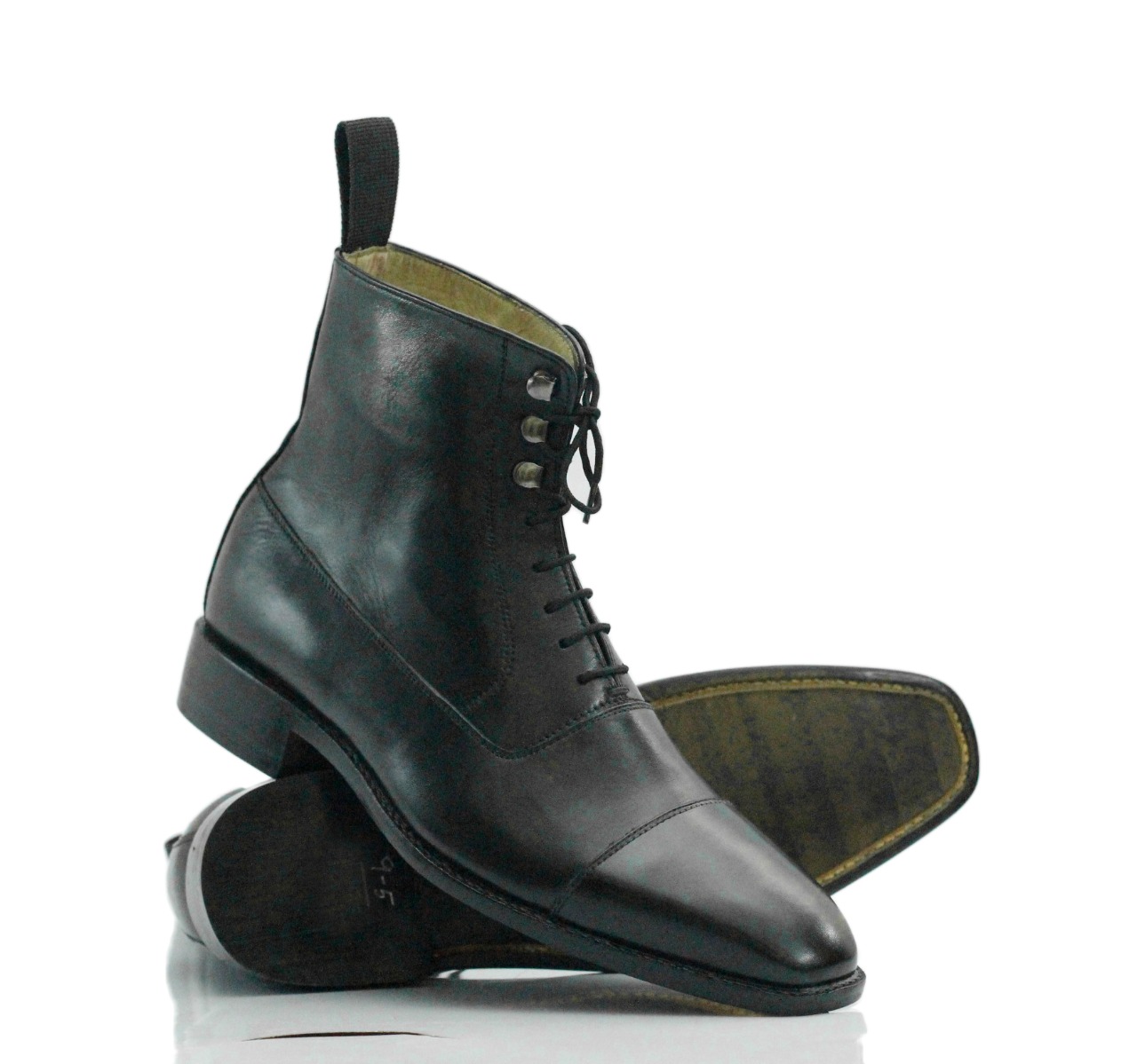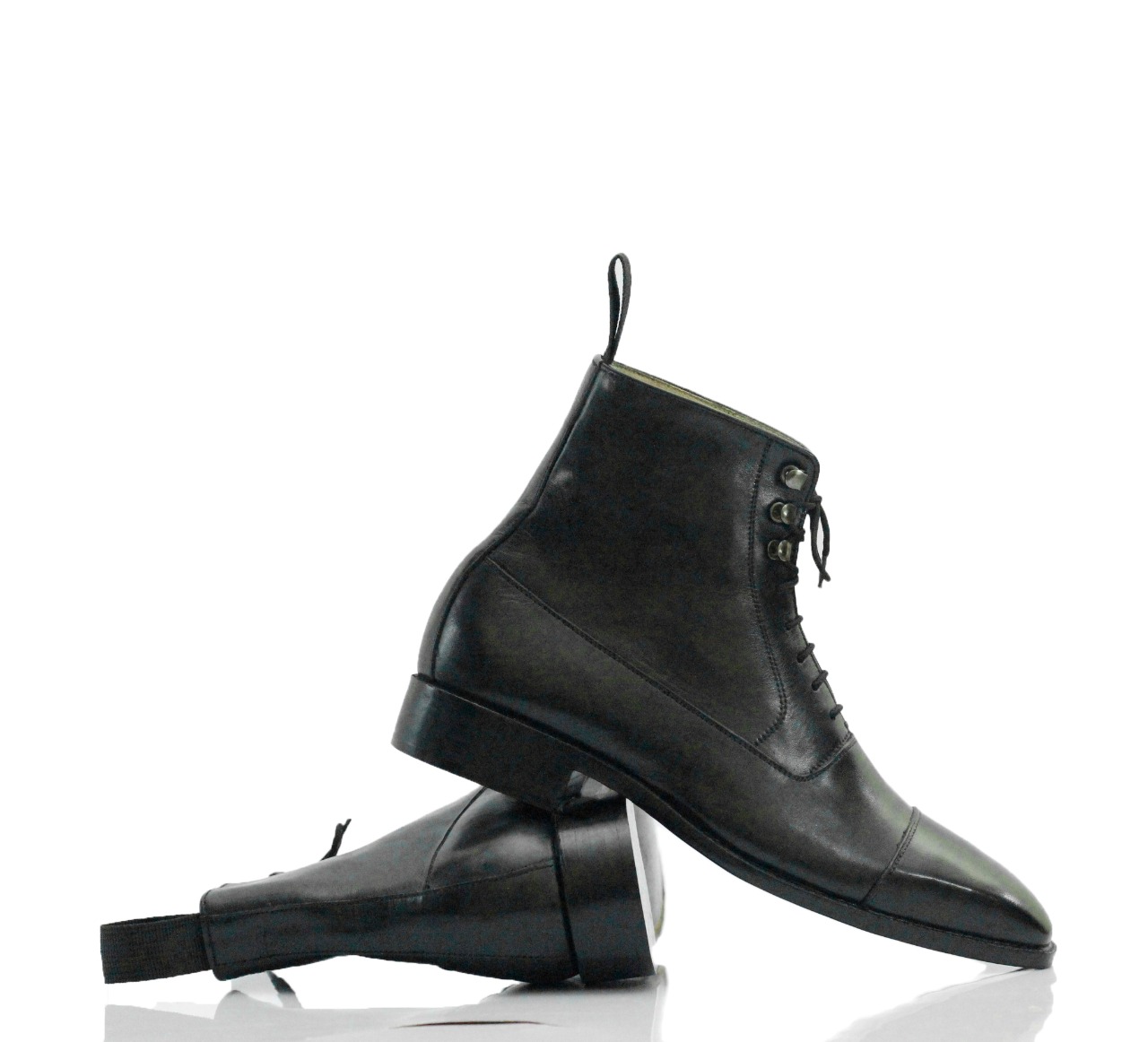 Handmade Black Ankle Cap Toe Boot,Leather Lace Up Boot,Dress Boot