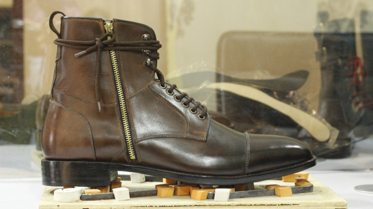 Handmade Ankle Brown Cap Toe Boot,Leather Side Zipper Lace Up Boot,Dress Boot